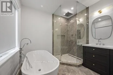 Recently built Four bedroom home features over 4000 Sq. Ft. of finished living space. The five bathrooms feature luxury plumbing fixtures throughout, custom cabinetry, full alarm and security cameras, and complete central air and vacuum systems. Family Room Gas Fireplace. Bring Your Most Discerning Clients. Full 5 Built-In Miele Appliances, Balance of Tarion Warranty. Overlooks Parkette with direct access