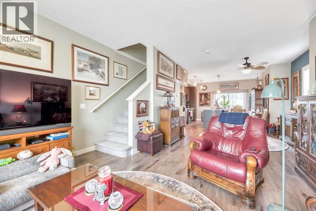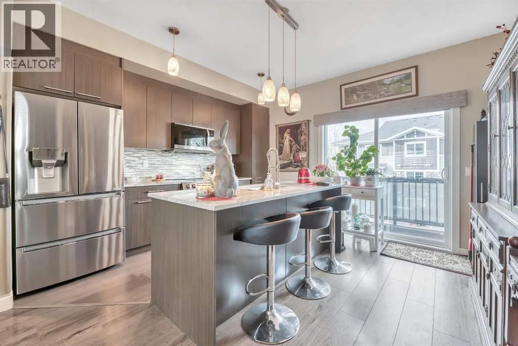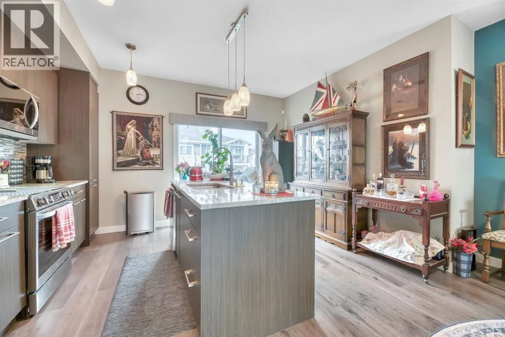out over 3 levels giving you both open plan living perfect for entertaining and gathering as well as quiet intimate spaces for work or relaxation. On the main level is a private office space that is perfect for anyone who is looking to work or study from home. There is even a 2 pc powder room conveniently located on this level. The main floor is open concept, flooded with natural light and boasts 9’ ceilings. The well equipped kitchen is complete with sleek European style cabinetry, newer stainless steel appliances including an induction stove, granite counters and an island with seating. A good sized dining area is located between the kitchen and the warm & welcoming living room. There is a great deck off the kitchen to enjoy some outdoor time.. 3 good sized bedrooms are found on the 3rd level including a primary complete with 3 pc ensuite bath with granite countertops as well as his and hers closets outfitted with Denca custom cabinetry. The main bath also has granite countertops and is ideally located right next to the second and third bedrooms and you’re going to love the convenience of upstairs laundry which is discreetly tucked into its own closet. Check out the Hunter Douglas thermal cell blinds keeping your home cool in summer and warm in the winter. Second floor blinds have remote control features which adds another level of privacy. New carpet has been added to both sets of stairs. The attached single car garage is insulated, heated and drywalled and comes with added shelving for storage. A fenced front yard is perfect for pets and kids to play because yes your fur babies are welcome in this pet friendly with board approval complex. But there’s no need to bring your shovel since snow removal and grounds maintenance is included. Whether you’re looking for your first home, a little more space for a growing family or downsizing for less maintenance and financial freedom this home fits the bill. You are going to love living in the vibrant community of Chestermere. Book your showing now. (id:62650)