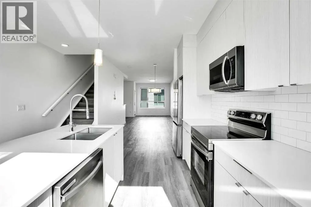 Row / Townhouse – Corner Unit | Panorama HillsWelcome to this stunning corner-unit townhouse in Panorama Hills, offering abundant natural light and a stylish, modern open-concept layout.On the main level, you’ll find a spacious bedroom, a convenient half bathroom, and direct access to the attached single garage.The second level features a bright and airy living room, dining area, and a
