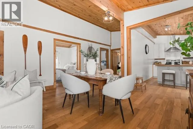offers accessible living for all ages and stages of life. Families, down sizers, and first time cottage owners will appreciate how naturally the space flows, making it just as suitable for weekend escapes as it is for extended stays. Outside, the level, private yard is ideal for kids, pets, and outdoor entertaining, with plenty of space for lawn games, fire pit nights, and long summer afternoons. The shoreline allows for easy swimming and paddling, while your dock becomes the starting point for endless exploration. Launch the canoe, kayaks or boat and enjoy kilometres of boating and exploring down to two different waterfalls, Slater Falls and May Chutes. As the sun sets, gather under the stars, listen to the crackle of the fire, and enjoy the peace that only waterfront living can offer. This property has a proven history as a successful short term rental, making it an excellent opportunity for investors or those looking to offset ownership costs, with furnishing options available for a seamless transition. Just minutes from downtown Bracebridge, you are close to charming shops, dining, cafés, and the iconic Bracebridge Falls, all while feeling tucked away in nature. Whether you are stepping into cottage ownership for the first time, downsizing to something simpler, or investing in a lifestyle driven property, this is a place where memories are made and Muskoka living truly comes to life. (id:62650)
