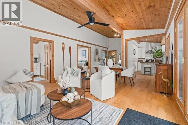 Set along the scenic Muskoka River, this charming four season waterfront bungalow is the kind of place that invites you to slow down, breathe deeper, and truly enjoy time at the lake. Updated with a modern yet cozy aesthetic, this home strikes the perfect balance between relaxed cottage living and effortless comfort. Designed entirely on one level, the bungalow layout