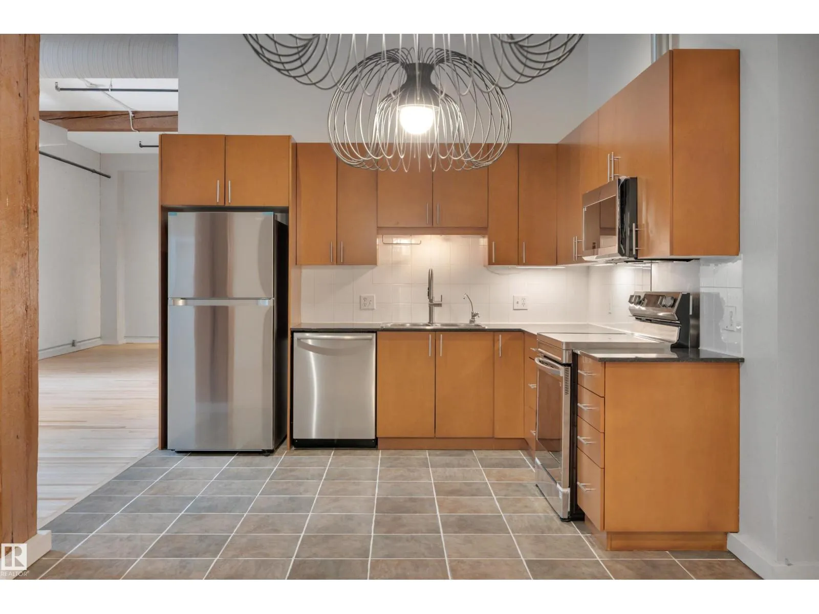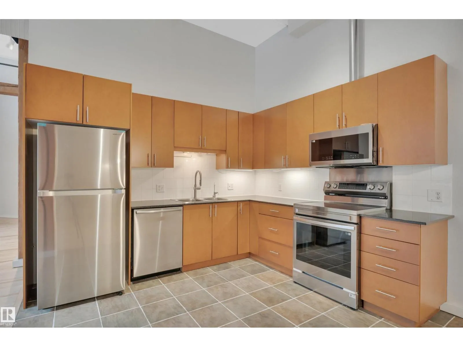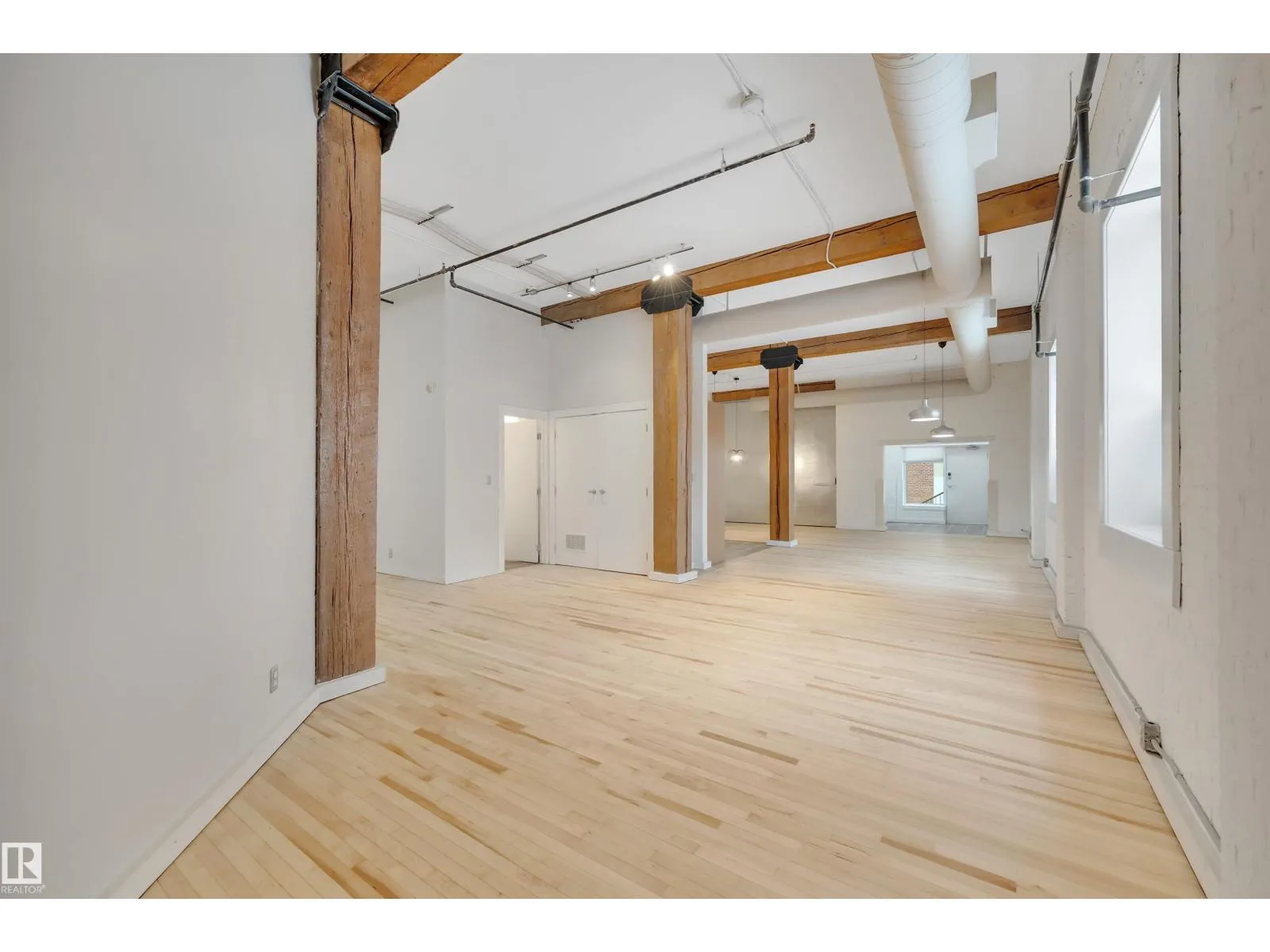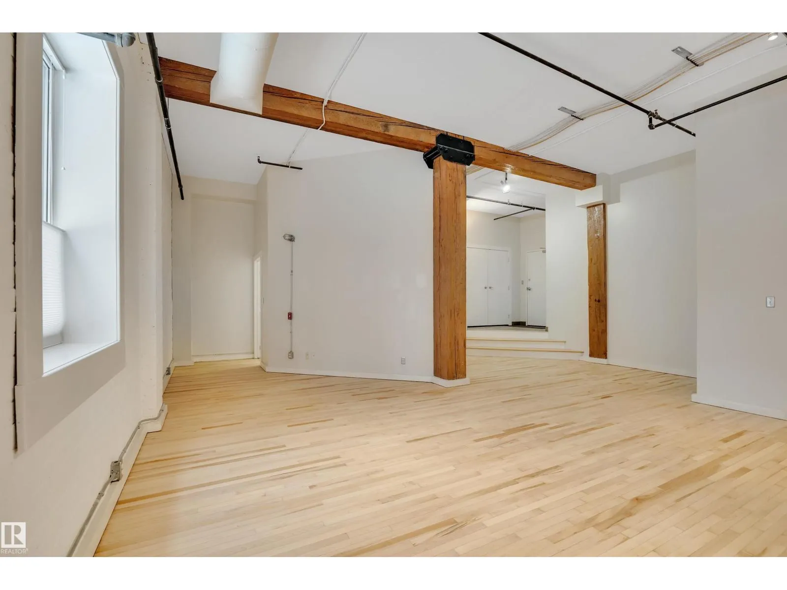 Stunning 1471 sqft Historic Loft in Downtown Edmonton. This beautifully renovated main-floor loft blends historic charm with modern upgrades. Featuring expansive ceiling heights and updated flooring throughout, the space is bathed in natural light, creating an airy and inviting atmosphere. The kitchen boasts brand-new appliances, and fresh paint enhances the loft’s clean, contemporary feel. This unit offers both privacy and