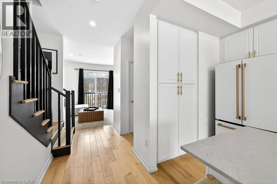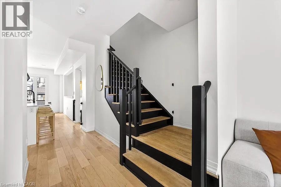 Backing onto a serene forest on Stoney Creek Mountain, this impeccably upgraded 3-year-old executive townhouse offers a rare combination of modern luxury and natural privacy. The move-in-ready interior is completely carpet-free, featuring engineered hardwood throughout, a refinished designer staircase, and a fresh top-to-bottom professional paint job. High-end finishes abound, from the gourmet kitchen’s luxury appliances (GE Cafe) to the spa-like