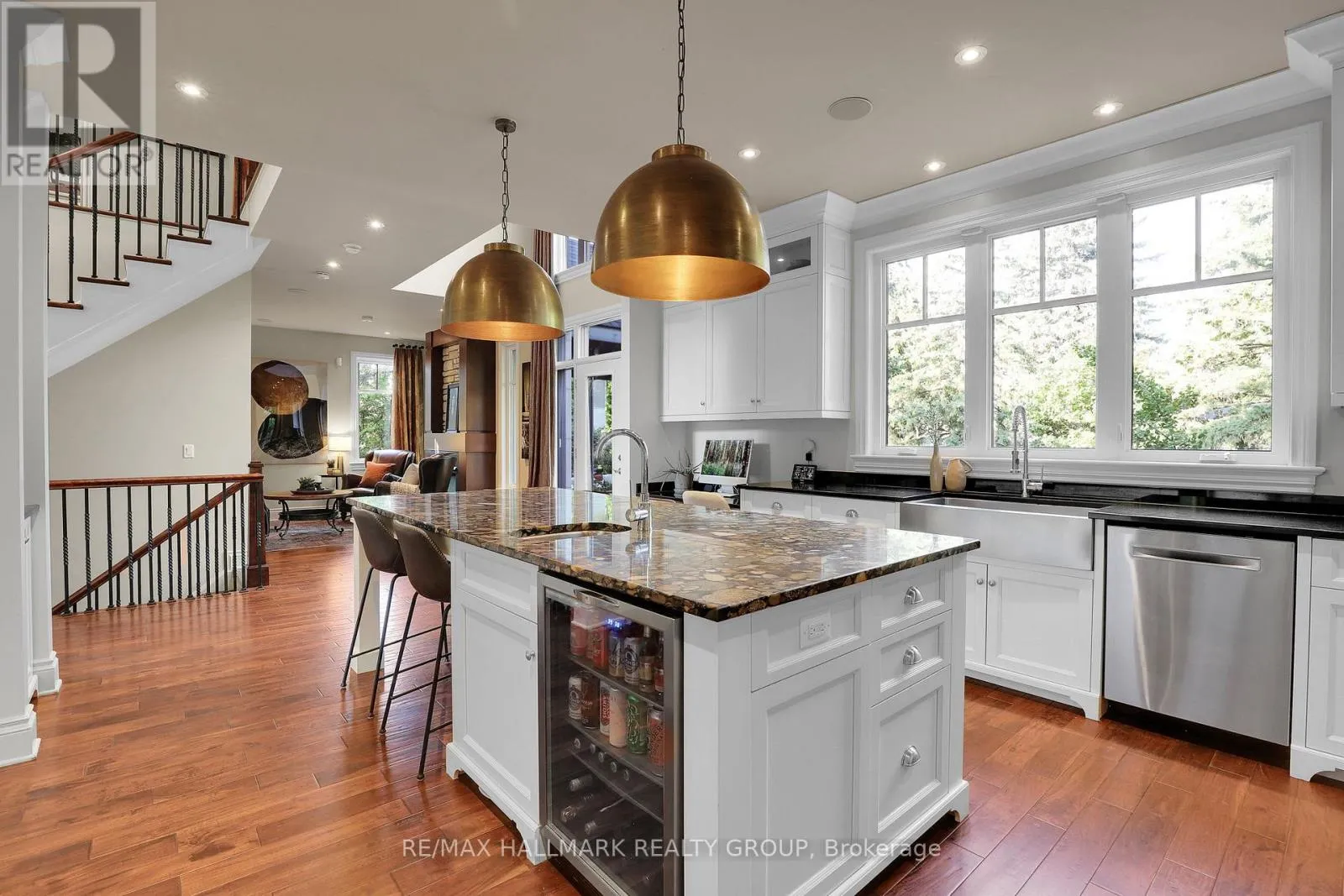 Magnificent double lot tucked on a quiet cul-de-sac with no rear neighbours and just steps to Dow’s Lake and the Canal, this custom 5-bed, 4-bath residence blends international craftsmanship w/ refined modern living. From hand-carved doors imported from Honduras to rare Black African walnut finishes and counters sourced from a Brazilian riverbed, every detail reflects uncompromising quality. A dramatic two-storey