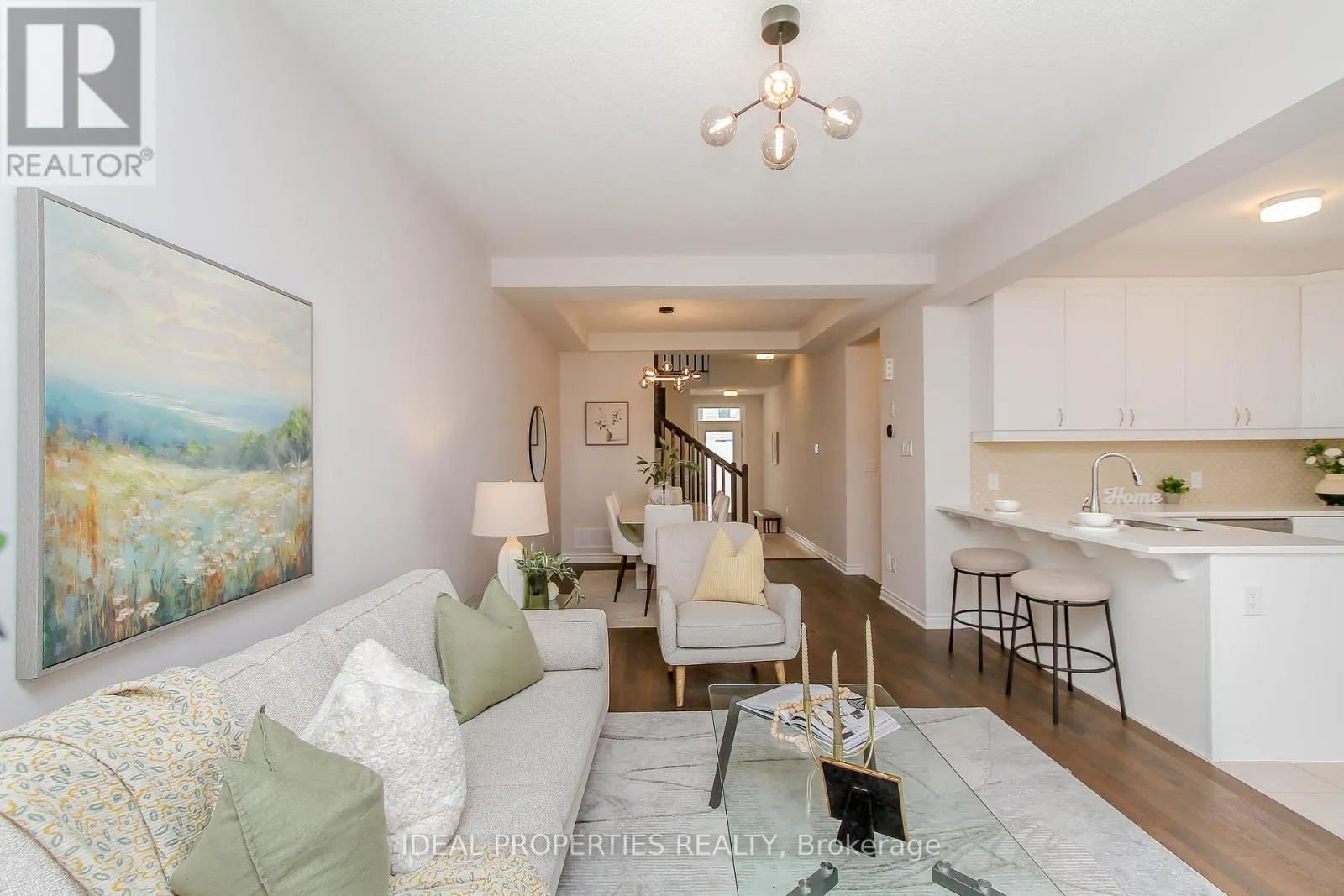 This beautifully upgraded Mattamy Lilac model welcomes you with a charming front porch and a bright, inviting foyer with walk-in closet. The main level features a spacious open-concept living and dining area, perfect for everyday living and entertaining. Enjoy morning coffee at the breakfast bar in the stylish U-shaped kitchen, complete with quartz countertops and enhanced by designer lighting fixtures
