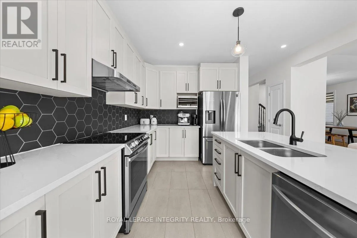 Built in 2022 and thoughtfully designed with over $80,000 in premium upgrades, this exceptional 4-bedroom residence blends timeless design with modern luxury. The open-concept main floor features 9′ smooth ceilings, extensive pot lights, maple hardwood flooring, and an elegant hardwood staircase. The gourmet kitchen showcases upgraded cabinetry, quartz countertops, designer hexagon backsplash, upgraded hardware, stainless steel appliances, and a sleek