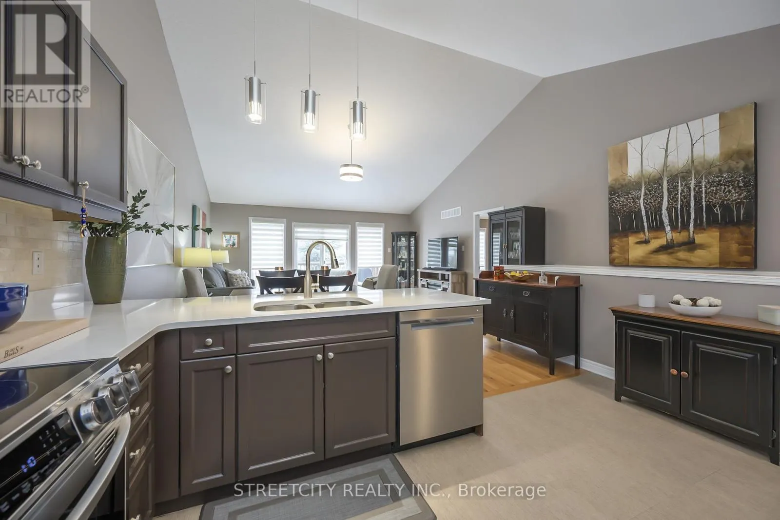 Welcome to this beautifully maintained bungalow townhome condominium offering stylish upgrades, thoughtful design, and quality construction in the highly desirable Blinn Gardens Condominium community. With over 2200 sq. ft. of finished living space, this “Trillium” floorplan features a bright, open-concept layout perfect for comfortable living and entertaining. The great room impresses with vaulted ceilings, hardwood flooring. The principal bedroom also