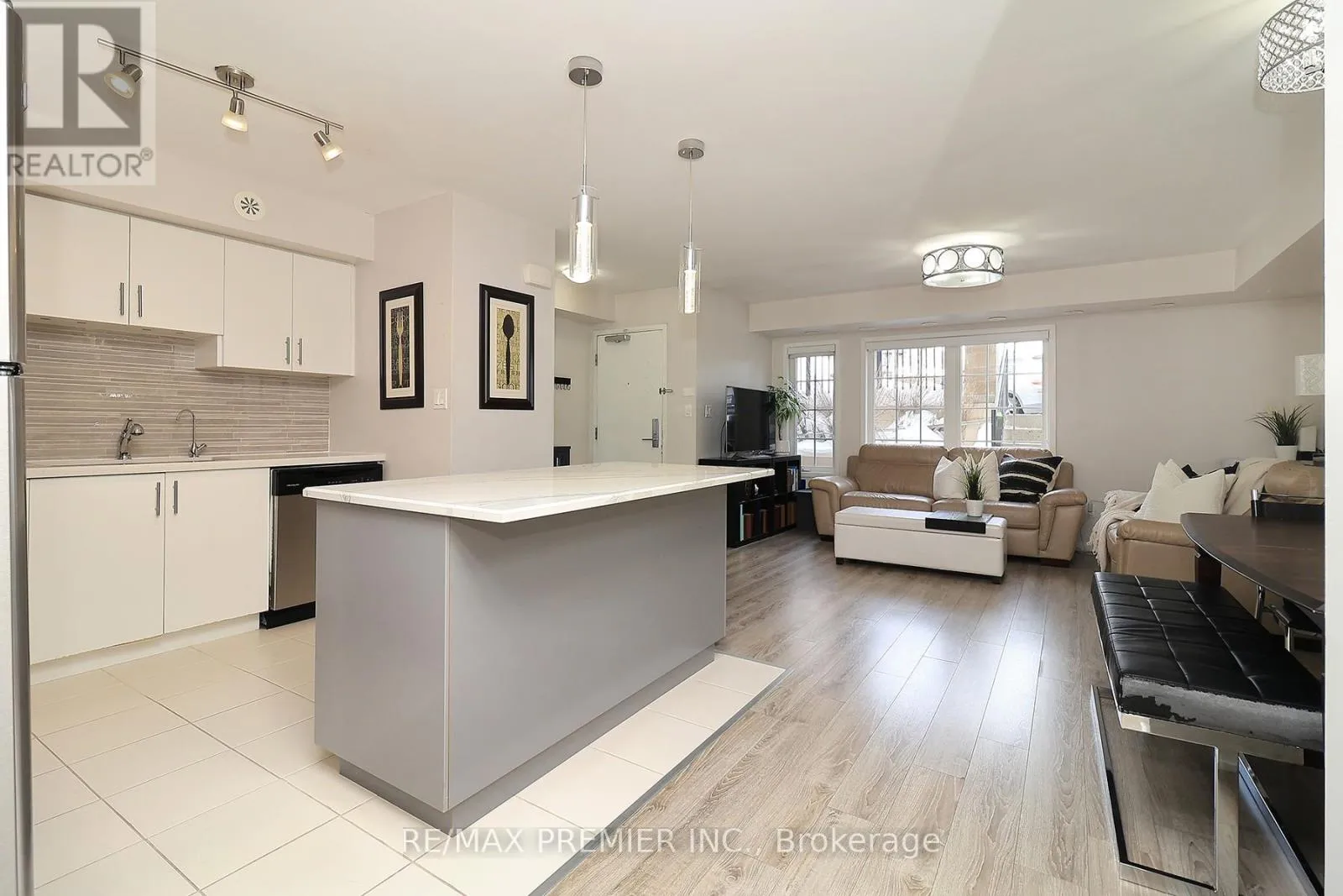 Welcome to La Viva Town Homes complex by Lormel Homes. This bright and airy floor plan boast an open concept living space, perfect for entertaining friends and family. The tastefully decorated stacked townhouse is on the ground floor. 2 bedroom + den, 2 bathroom, 2 underground parking spots and a locker. The beautiful spacious kitchen has quartz counter tops and