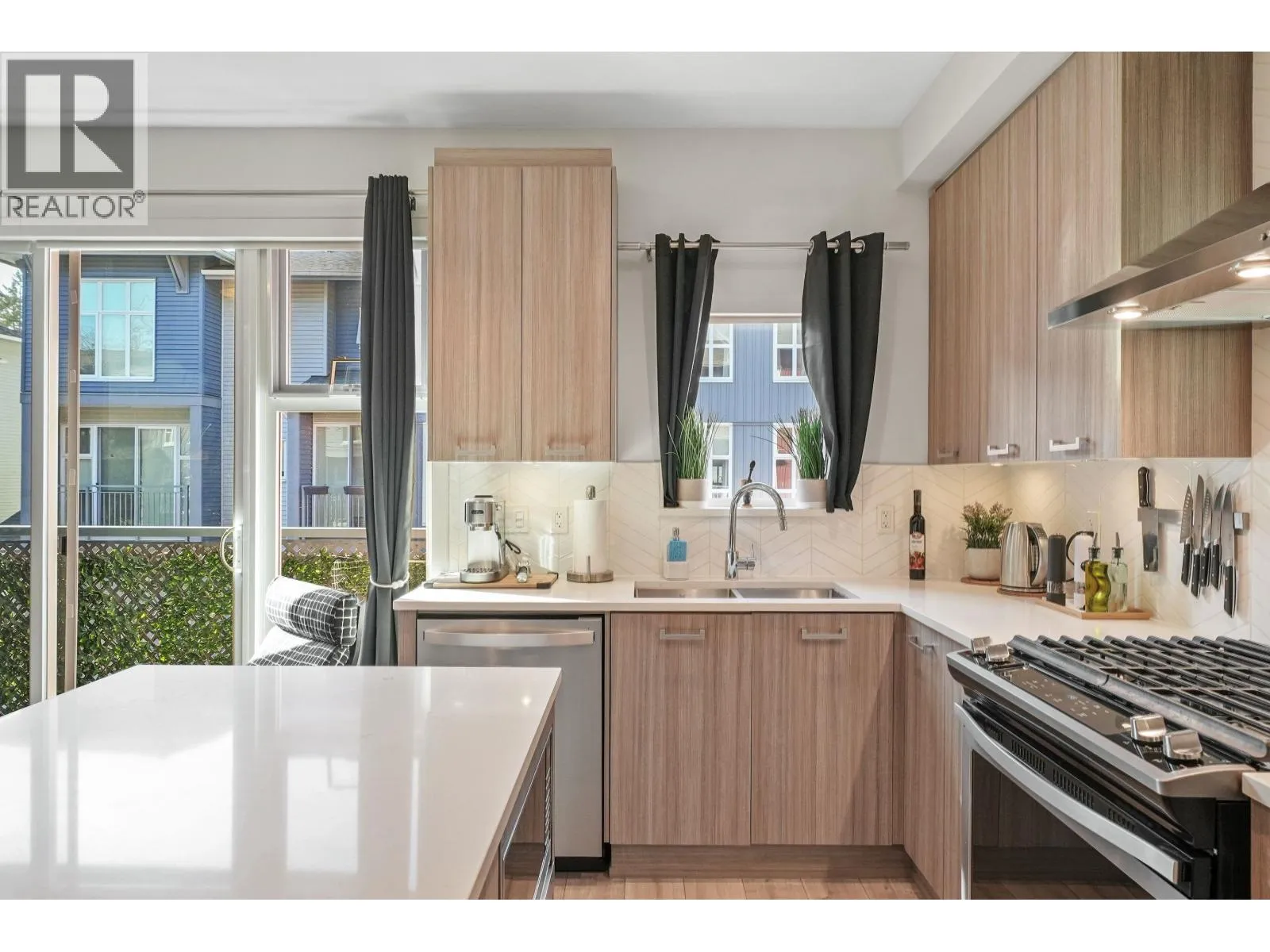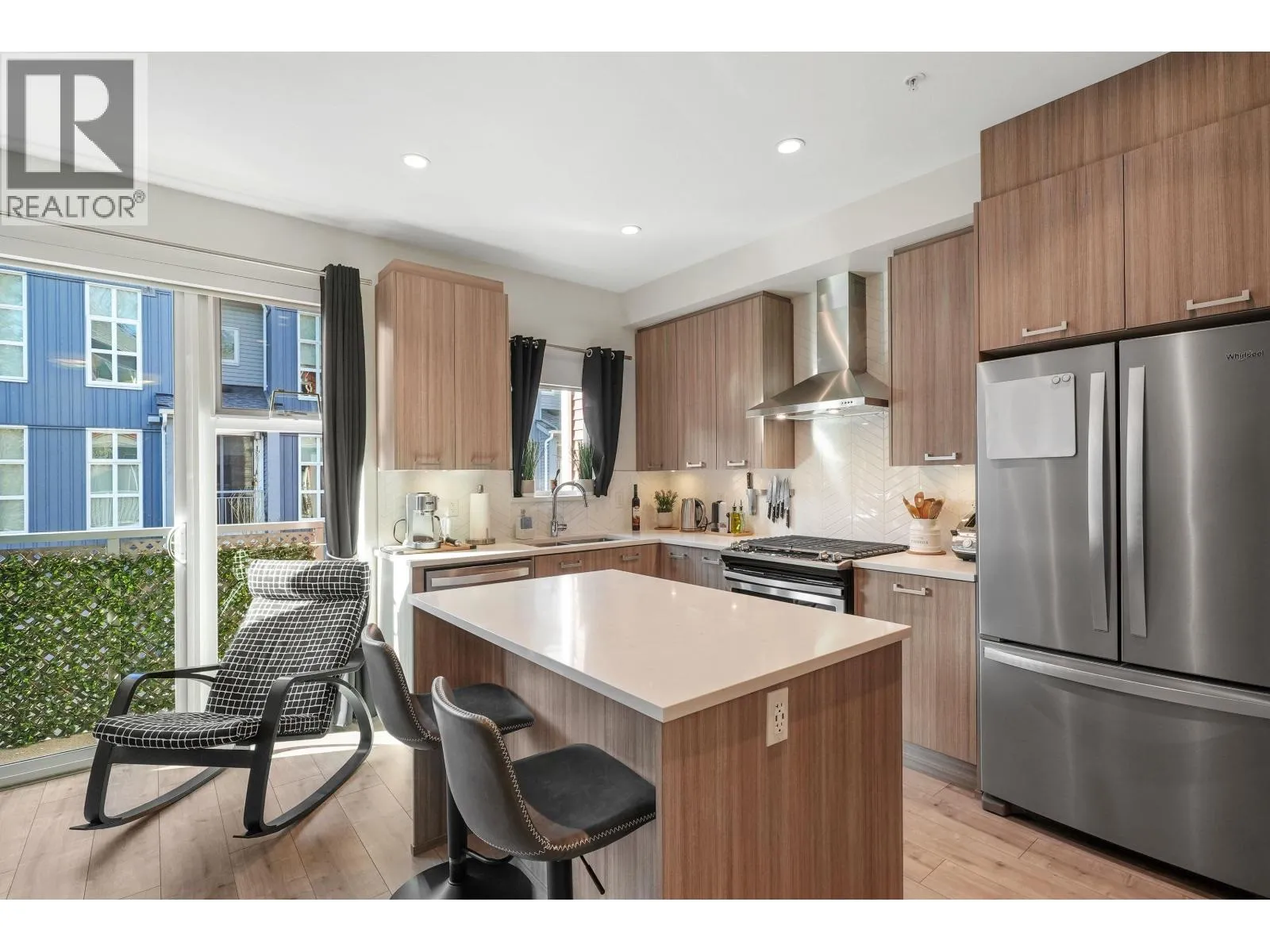 This beautifully designed 4Bdrm/4Bth home backs onto the tranquil Siegel Creek greenbelt, offering exceptional privacy & serene nature views. The bright, open-concept layout features large windows that fill the home w/natural light. Step outside to your east-facing backyard w/spacious deck & gas BBQ hookup-perfect for summer entertaining. The modern kitchen is equipped with SS appliances, a gas stove, built-in microwave