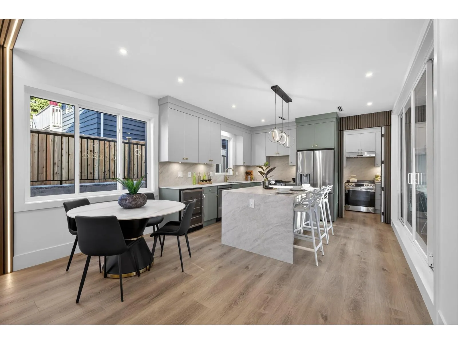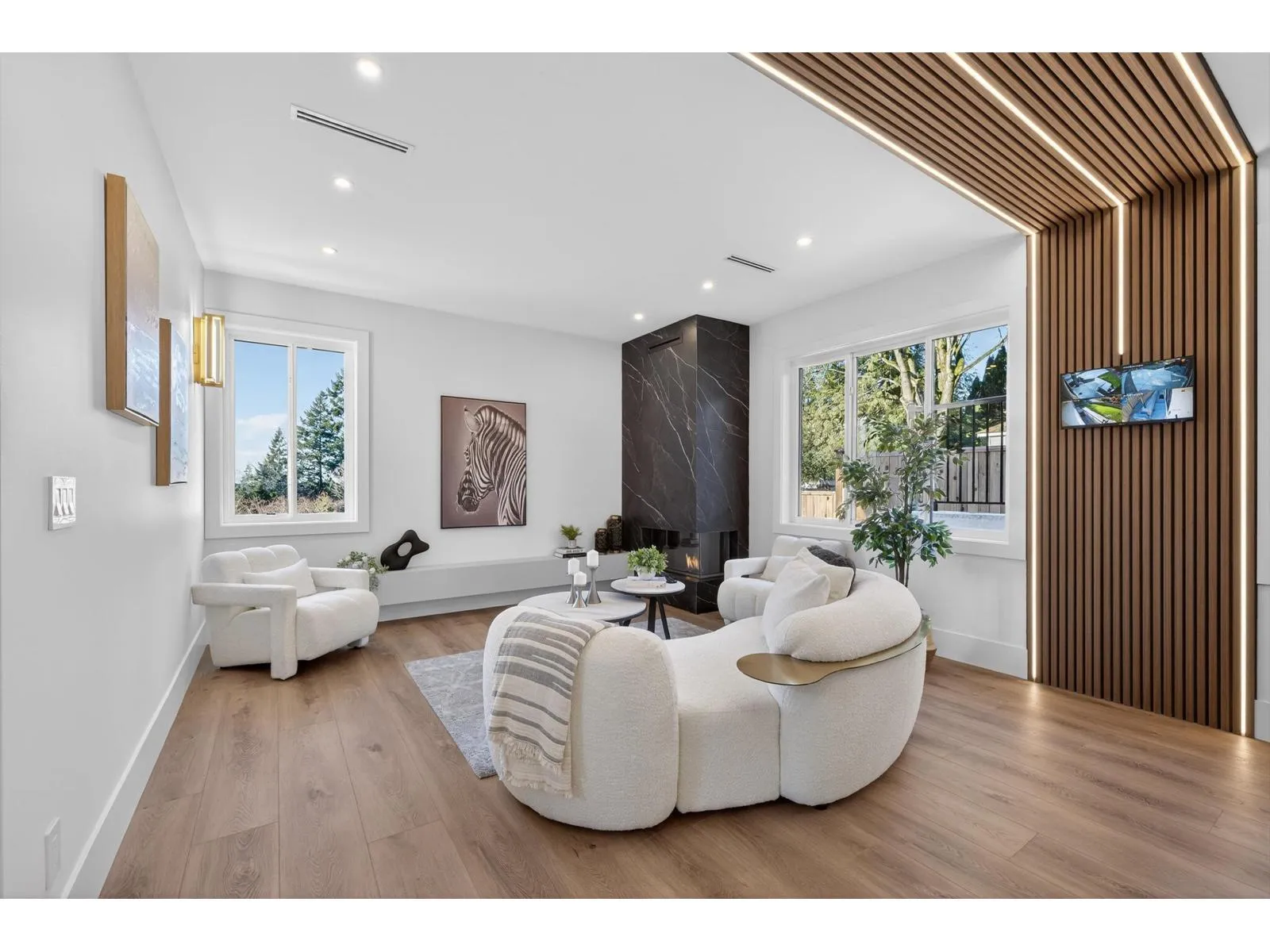Brand-new modern West Coast ½ duplexes on a prime corner lot with unobstructed Burns Bog views. Each side offers 3,022 sq.ft.+390 sq.ft. covered decks on a 9,000 sq.ft. lot(approx.4,500 sq.ft.per unit),side-by-side double garage & 53-ft driveway parking up to 8 vehicles. Open-concept main floor with floor-to-ceiling windows,designer kitchen with double fridge,wine fridge,gas range & hidden spice kitchen, +main-floor bedroom with
