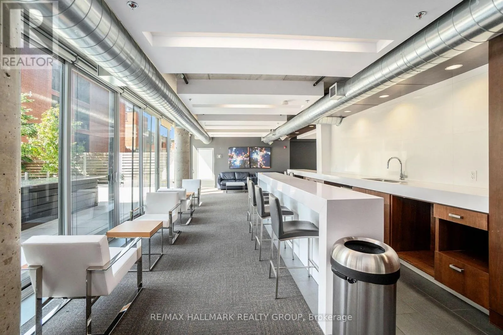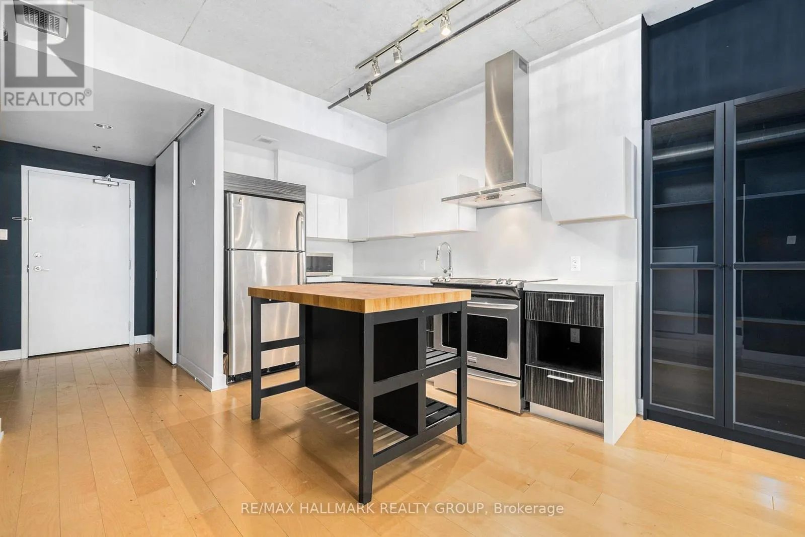 Modern condo in the heart of Centretown! This stylish unit features an open-concept layout with hardwood floors and floor-to-ceiling windows. The sleek corner kitchen has white cabinetry and stainless steel appliances. The bedroom, tucked behind a sliding door, connects to a cheater en-suite with tiled flooring, a modern vanity, pot lighting, and a tub-shower combo. A spacious balcony spans the