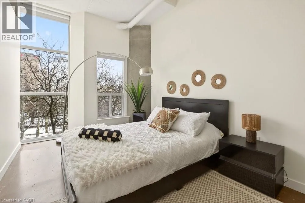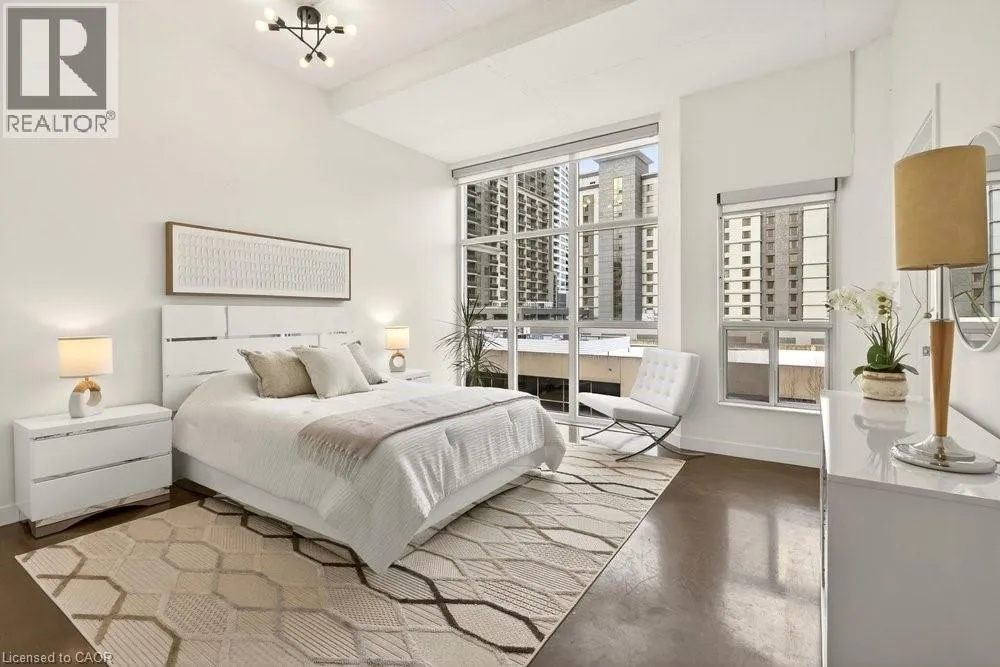 Welcome to Unit 401 at Core Lofts – a stunning corner suite in the heart of downtown Hamilton. Offering just over 1,500 sq ft of open-concept living space, this 2 bedroom, 2 bathroom loft combines industrial character with modern comfort. Featuring 10+ foot ceilings, polished concrete floors, and expansive floor-to-ceiling windows with desirable east and north exposures, this bright and