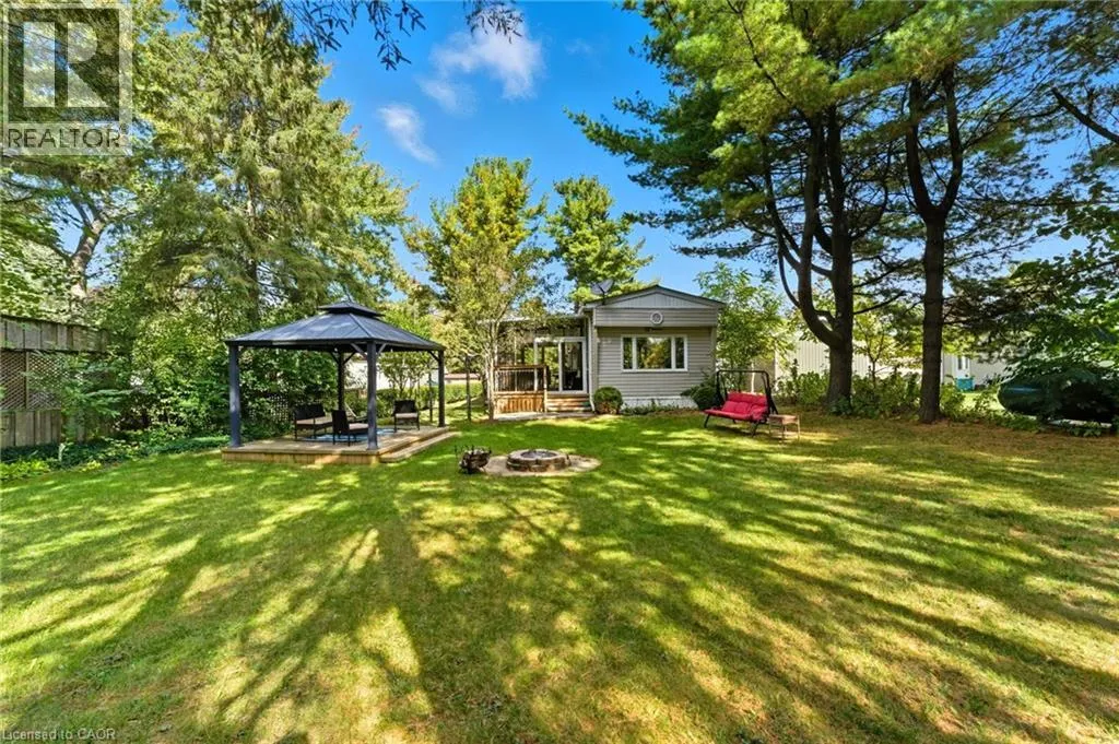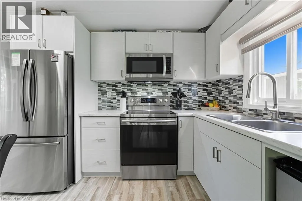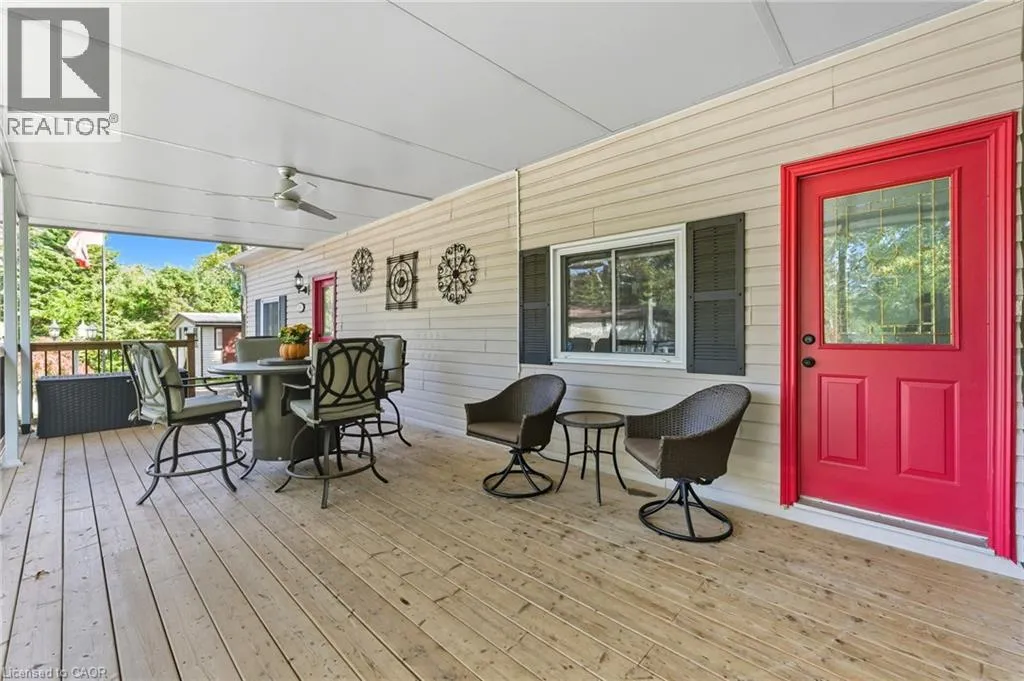 blinds throughout. The stylish eat-in kitchen features upgraded cabinetry, stainless steel appliances, and a rough-in for a dishwasher. A spacious living room with two large windows fills the home with natural light, while the primary bedroom offers comfortable proportions right beside the 4-piece bathroom with in-suite laundry. A second bedroom or flex room makes the perfect spot for an office, craft space, or guest room. Outdoors, you’ll love spending time on the massive 40′ x 12′ covered deck, complete with a 10′ x 12′ screened-in room—perfect for morning coffee or evening gatherings. The exterior of this home is surrounded by mature trees and features a fire pit, deck with gazebo, and two sheds for extra storage. Included in the sale are tons of extras such as outdoor furniture, shelving, firewood, and more! Very rarely do these year-round units come up for sale, especially ones with these upgrades, so DO NOT miss your chance! Book your showing today! [Monthly rent: $540.04 (additional fees apply)] (id:62650)