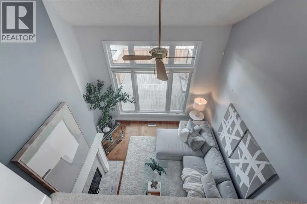 and hard wood flooring, providing the perfect canvas for any decor style. The open-concept design allows for seamless transitions between daily life and high-end entertaining. The living room serves as a dramatic centerpiece with an impressive vaulted ceiling and a cozy glass insert fireplace. A culinary delight, the kitchen boasts extensive cabinetry, sleek quartz counters, newer stainless steel with gas stove, a contemporary backsplash with undermount lighting, and a unique butcher block breakfast bar with seating for two. Adjacent to this space sits a generous dining room capable of accommodating everything from intimate gatherings to large dinner parties. A private convenient two-piece powder room completes the main level. The upper-level sanctuary features a serene primary retreat equipped with two stylish built-in closets and a luxurious three-piece ensuite featuring a walk-in shower. A second oversized bedroom and a beautifully appointed main bathroom offer plenty of space for family or guests. Highlighting the uniqueness of this specific property is a bright loft area with two skylights, a feature exclusive to this unit alone within the complex. This versatile space is ideal for a home office or a secondary family room.The fully finished basement provides a massive recreation room along with extensive storage options to keep your home organized. Outside, the living room views overlook a private front patio and fully enclosed yard, offering an ideal secluded spot for summer BBQs and soaking up this tranquil outdoor space. For parking and convenience, the home inc ludes a double rear attached garage. Upgrades include; All Triple Pane Windows, 2 SkyLights, Gas Insert in Fireplace, French Door Fridge, Dishwasher, Gas Stove, All Bathrooms, Hard Wood Flooring, HWT. Located in the desirable community of Woodbine, this property offers unparalleled access to Fish Creek Provincial Park, scenic walking paths, and vibrant green spaces. Residents enjoy a mature neighborhood atmosphere and quick access to Stoney Trail, nearby playgrounds, public transit, and premium shopping. A home of this caliber in such a premier complex will not last long. Book your private showing today! (id:64429)