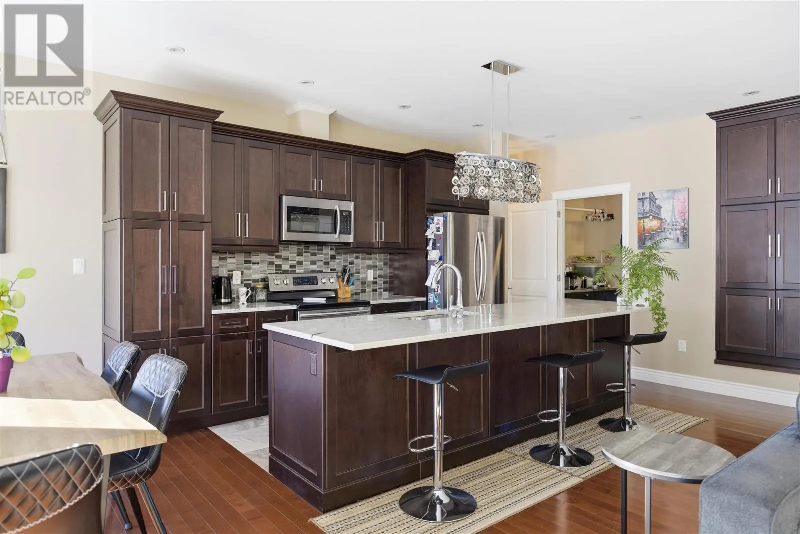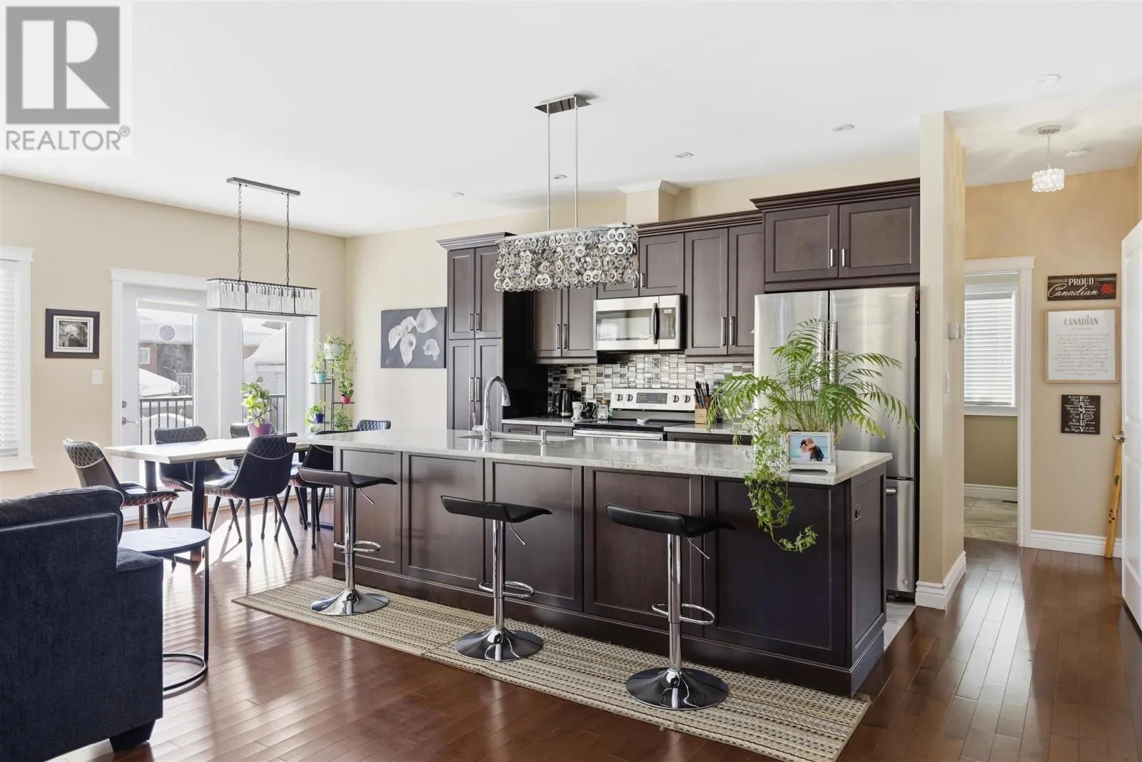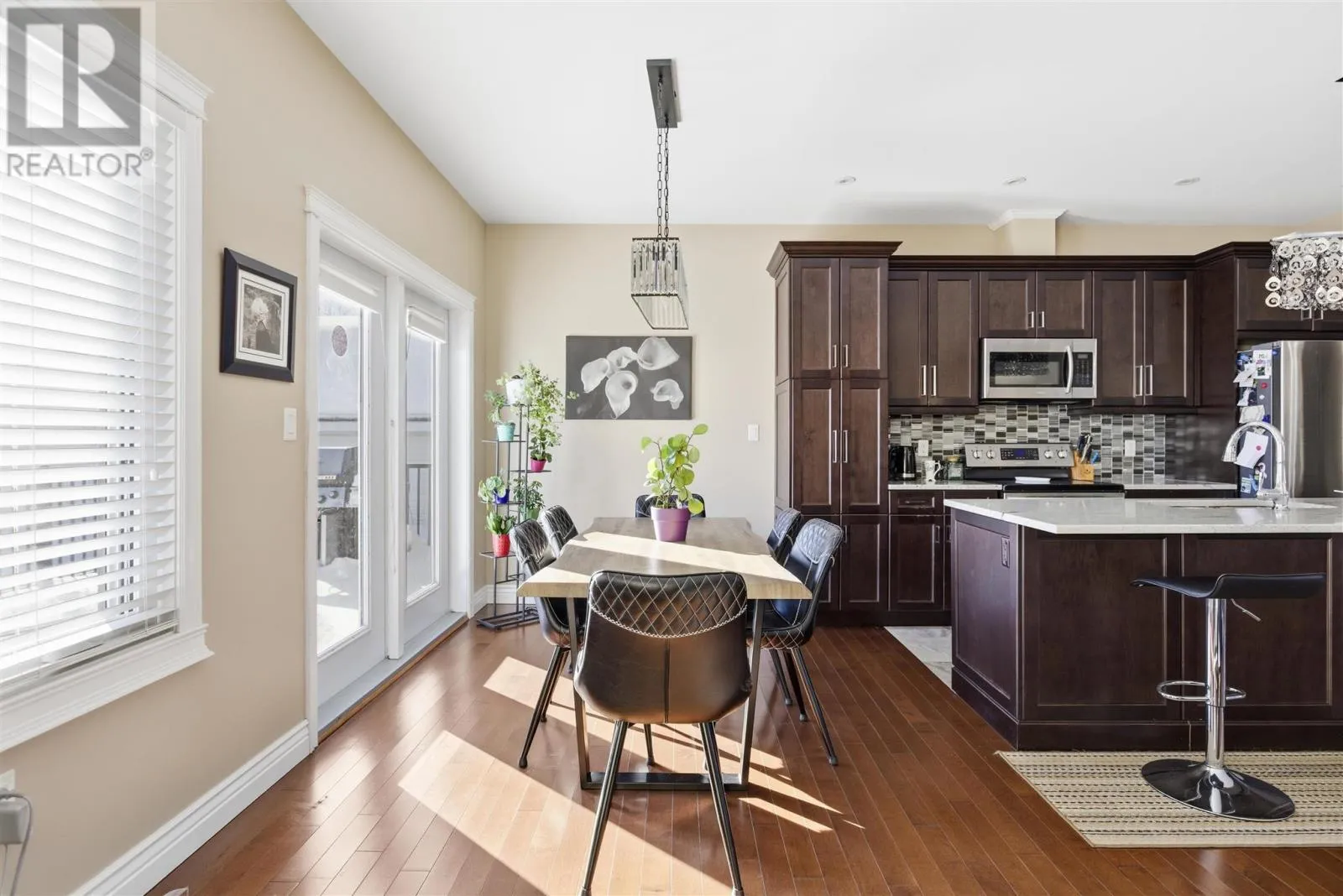 Welcome to this beautifully maintained 1,650 sqft home built in 2015, offering modern comfort, thoughtful design, and quality build/finishes throughout. The heart of the home features a spacious open-concept kitchen, dining, and living area with 9-foot ceilings and hardwood flooring throughout the main spaces. The kitchen is designed for both everyday living and entertaining, showcasing a large granite island, abundant