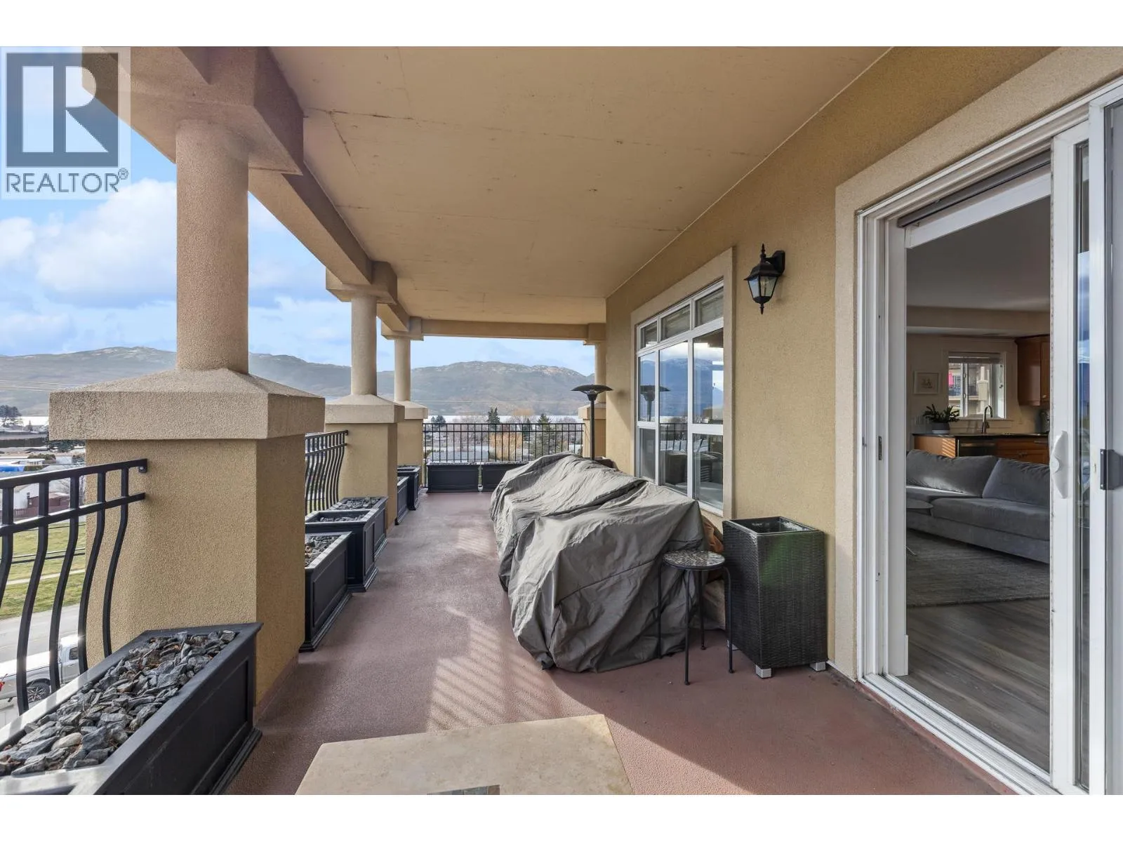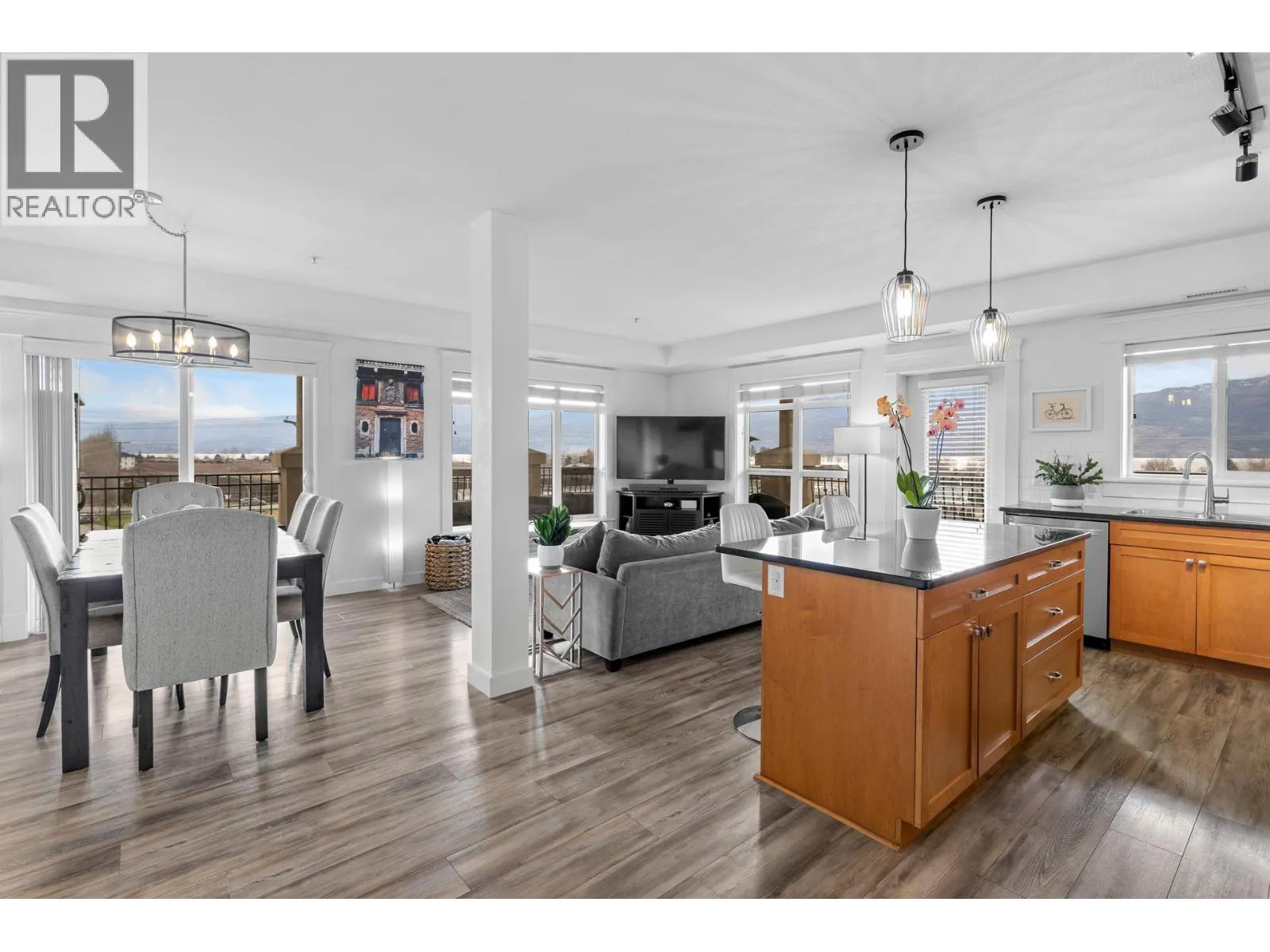Welcome to Tuscany Villas! Gorgeous lake views and effortless resort-style living await in this poolside 2-bedroom, 2-bathroom condo offering 1,150 sq. ft. of interior living plus an incredible 480 sqft covered deck perfect for entertaining, relaxing, and taking in the scenery. This bright, open-concept plan is beautifully finished with newer flooring and a stylish kitchen featuring a large island, granite