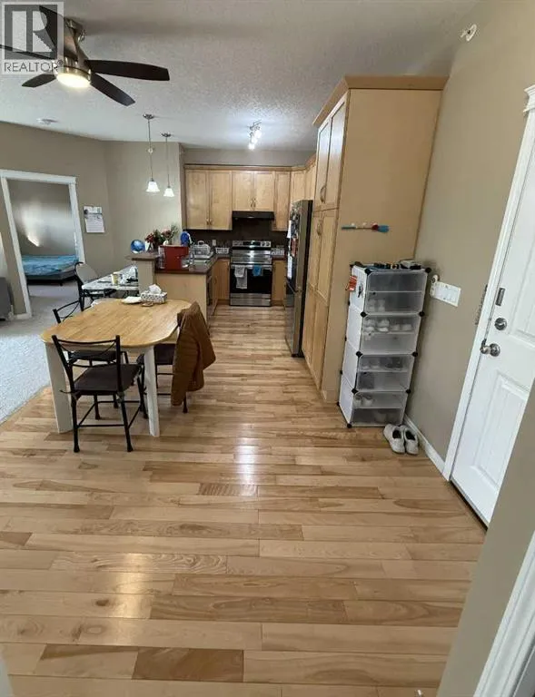 Welcome to this top-floor, southwest-facing condo in the heart of Panorama Hills, offering 840 sq. ft. of bright and functional living space with 9-feet ceilings and beautiful courtyard views.This spacious 2-bedroom, 2-bathroom unit features a thoughtfully designed open-concept layout filled with natural light. Hardwood flooring enhances the main living area, which opens onto a large southwest-facing balcony — perfect for
