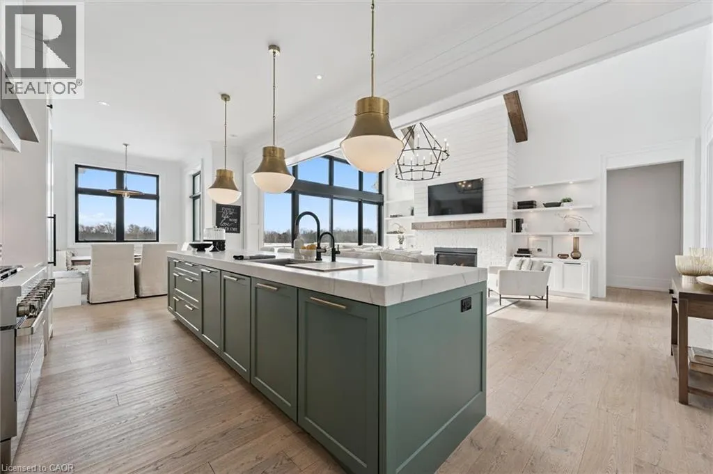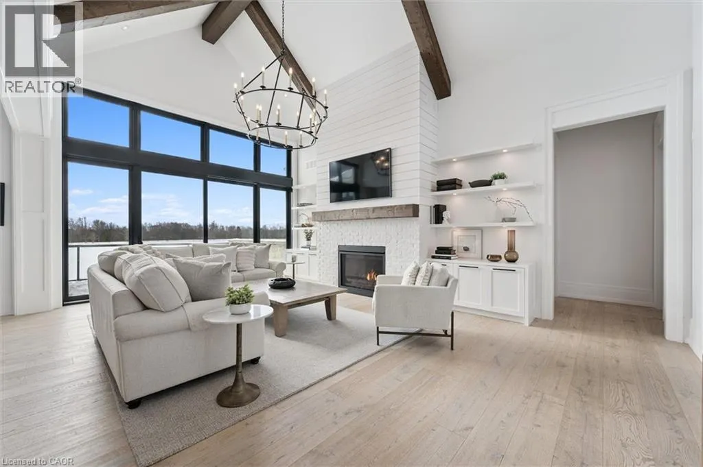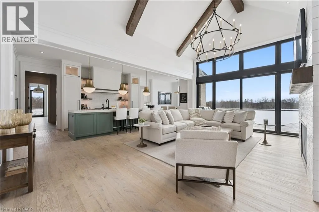 Experience true waterfront living—without leaving the city. Nestled in the exclusive gated community of Heritage Lake Estates, this stunning modern farmhouse bungalow offers a rare blend of privacy, space, and lakeside serenity. Wake up to peaceful water views, enjoy sun-filled open-concept living, and entertain effortlessly beneath soaring cathedral ceilings accented by warm wood beams. Every detail has been thoughtfully curated