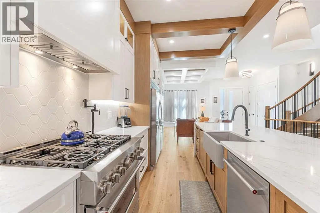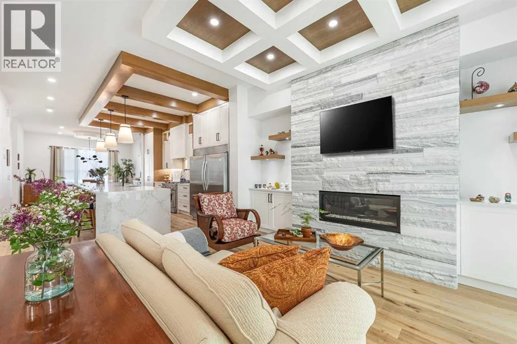 Welcome to this beautifully designed home on a quiet street in the sought after community of Killarney. Offering over 2,800 sq. ft. of luxurious living space, this air-conditioned 4 bedroom, 3.5 bathroom residence showcases exceptional craftsmanship and timeless style. The bright main floor features coffered ceilings, rich hardwood floors, a dramatic curved staircase, and a custom stone fireplace. The chef-inspired