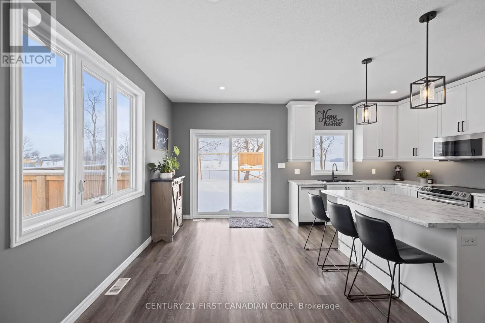 Better than new, offering over 2500sqft of living, this 2021 RSJ Construction Home is located in the charming community of Crediton-just five minutes from Exeter-on a quiet dead-end street backing onto peaceful farmland. Set on a large, fully fenced lot, it offers the perfect blend of country serenity with in-town convenience. Step inside to a bright, open-concept main floor filled
