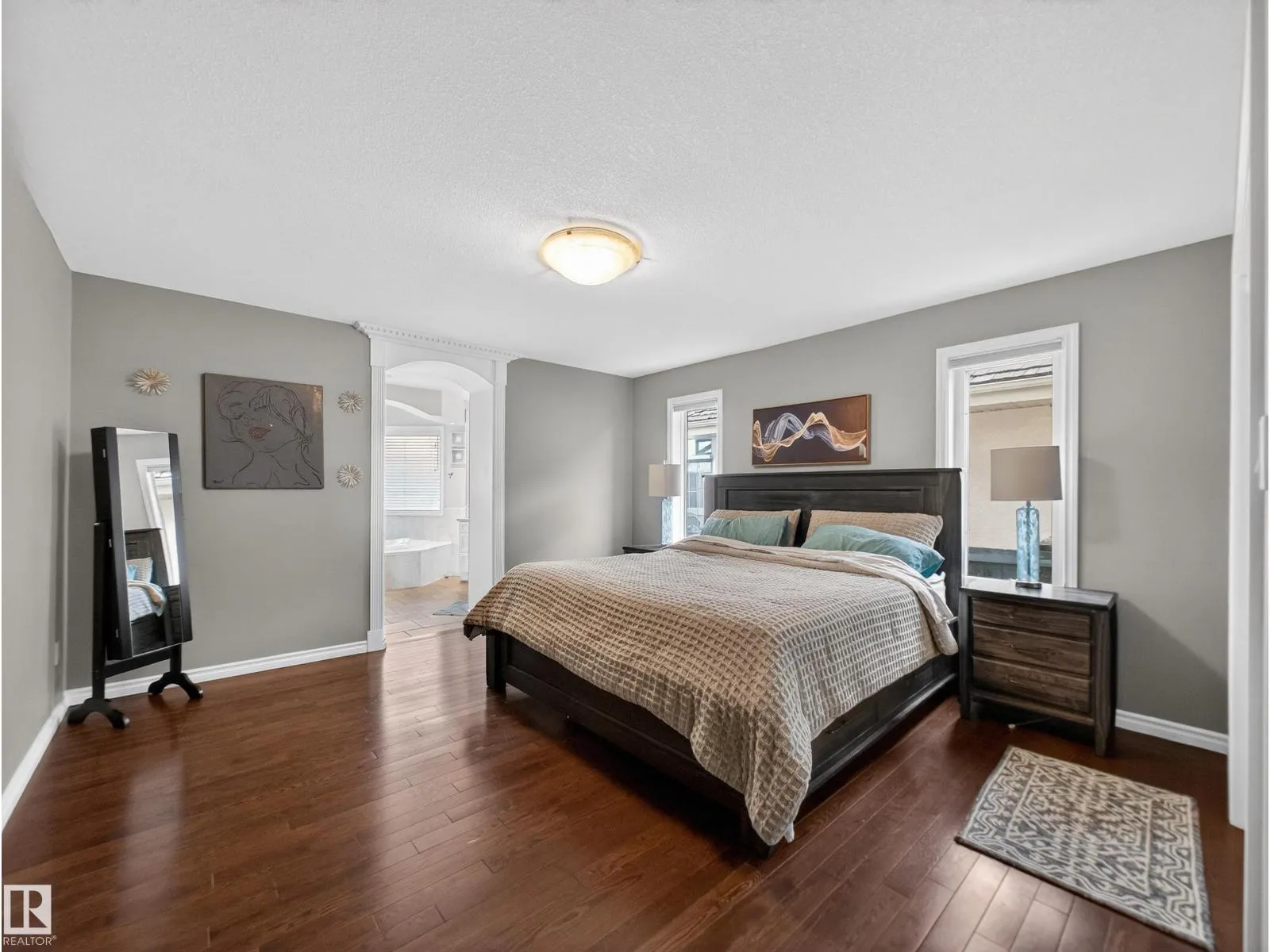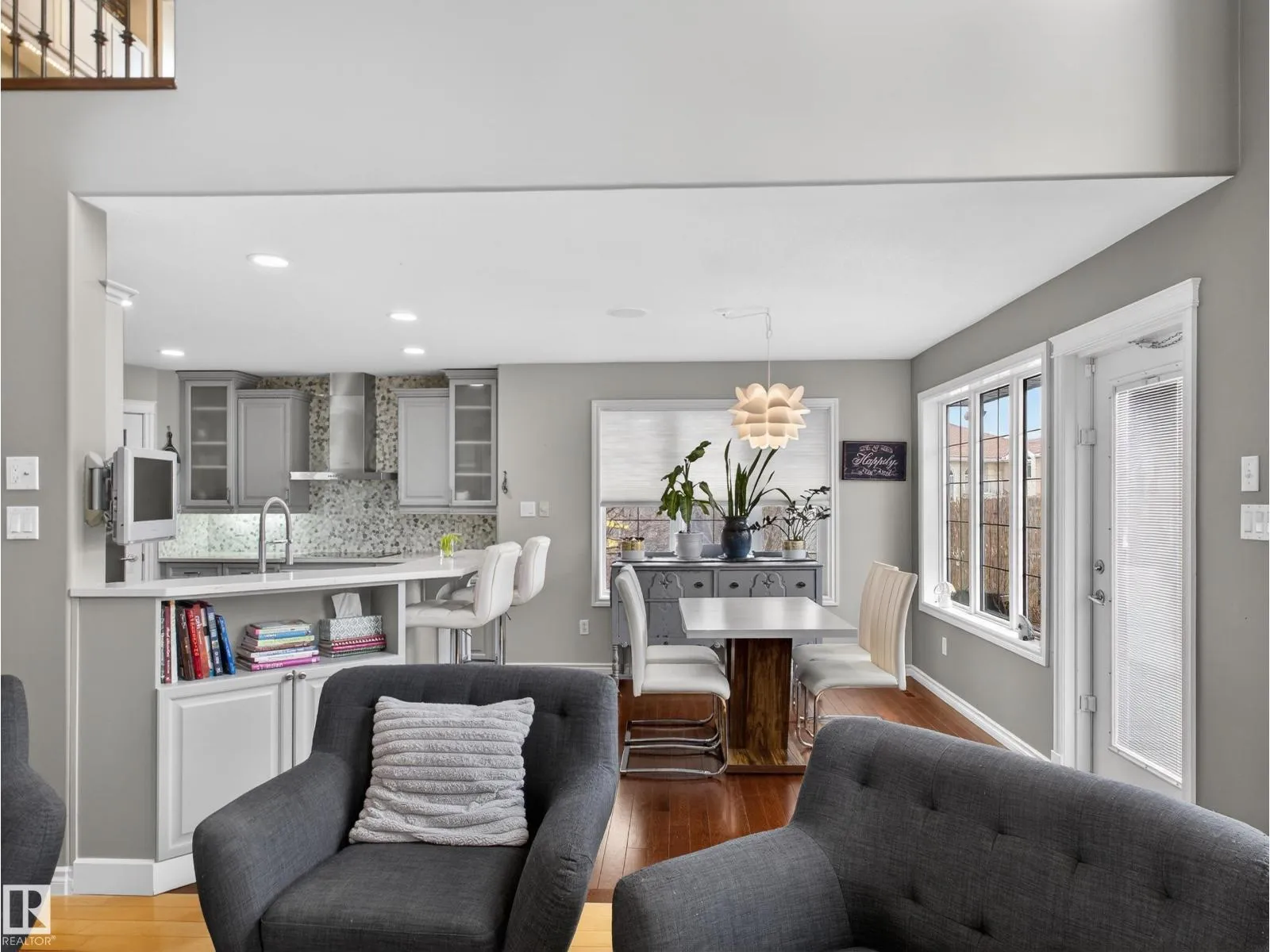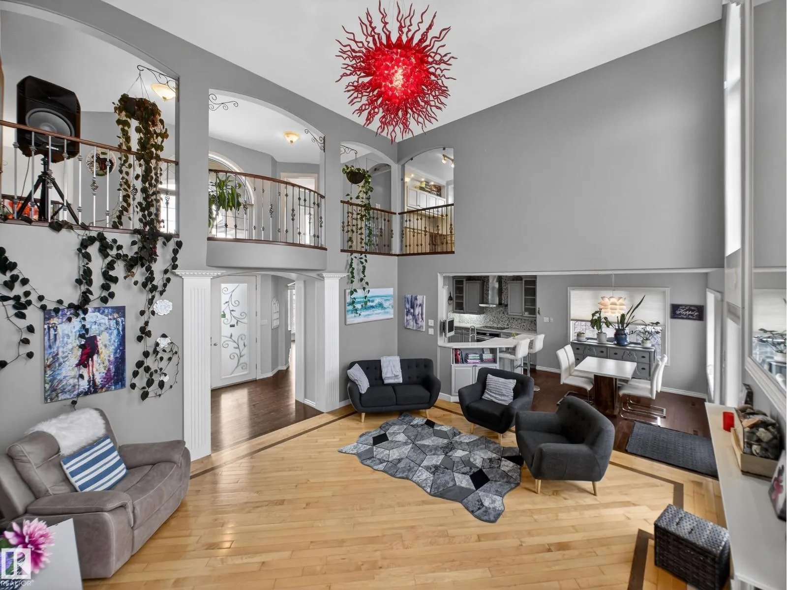 Elegant 5-bedroom Carriage Custom-built home in the sought-after community of Terwillegar Gardens. The main floor features an inviting foyer, a bright living room with vaulted ceilings, expansive windows, gas fireplace, and chandelier. The kitchen offers quartz countertops, modern cabinetry, stainless-steel appliances, and a corner pantry. A formal dining room is ideal for entertaining, while the rare main-floor primary suite includes