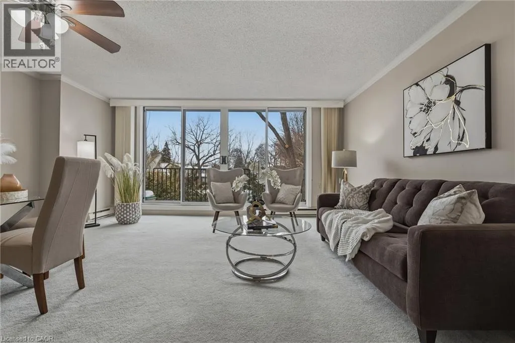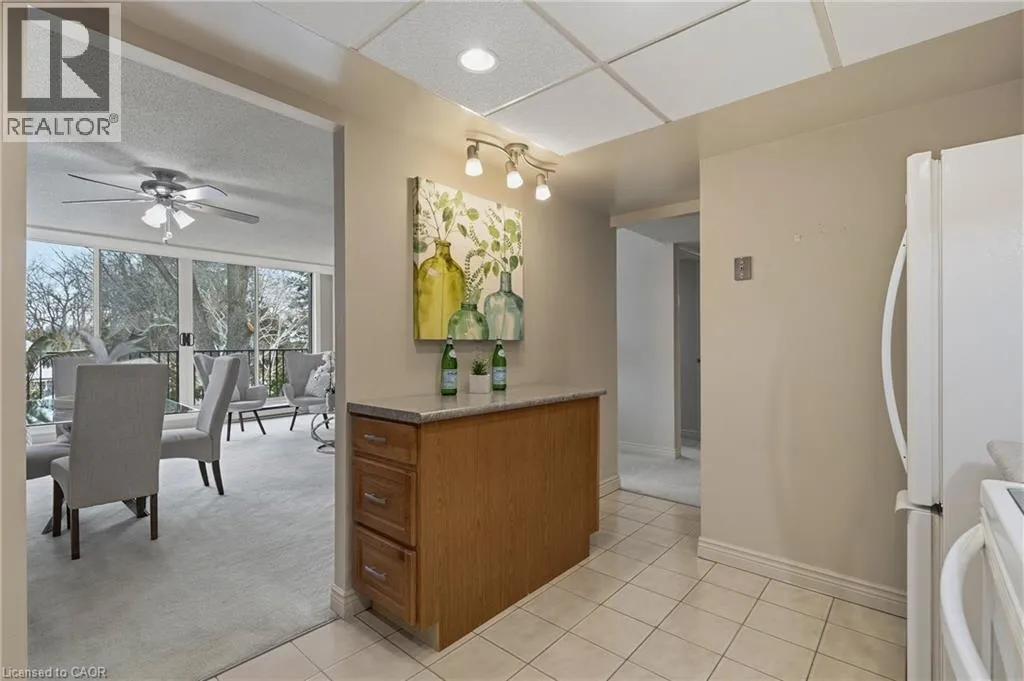 Rarely offered, immaculate one-bedroom suite featuring an updated bathroom with granite countertop and a refreshed oak kitchen complete with backsplash, additional storage cabinetry, under-cabinet lighting, pot lights, double sink, built-in dishwasher, fridge, and stove. Convenient in-suite laundry with washer and dryer plus extra storage. The spacious open-concept living and dining area is filled with natural light and offers a walk-out