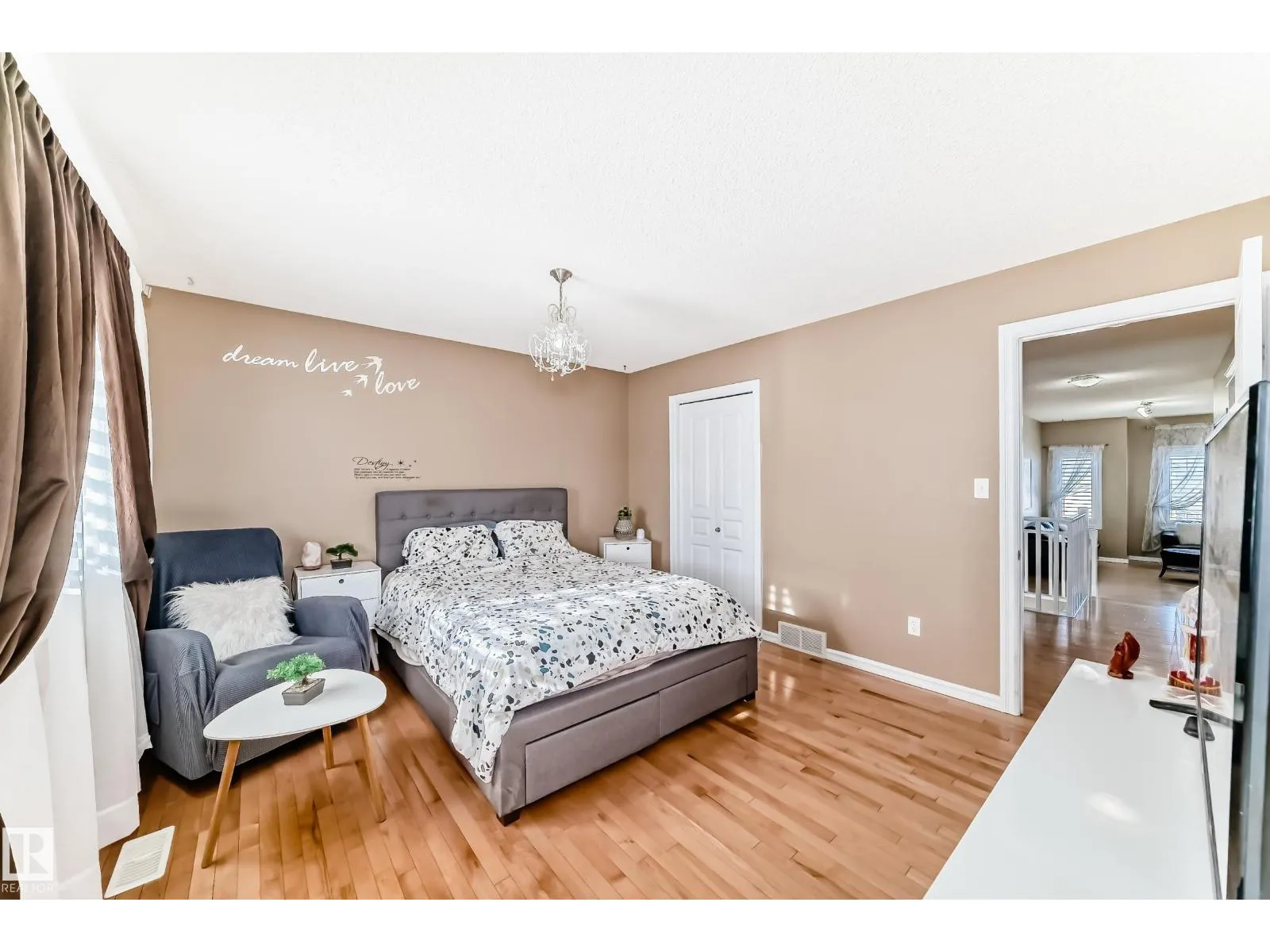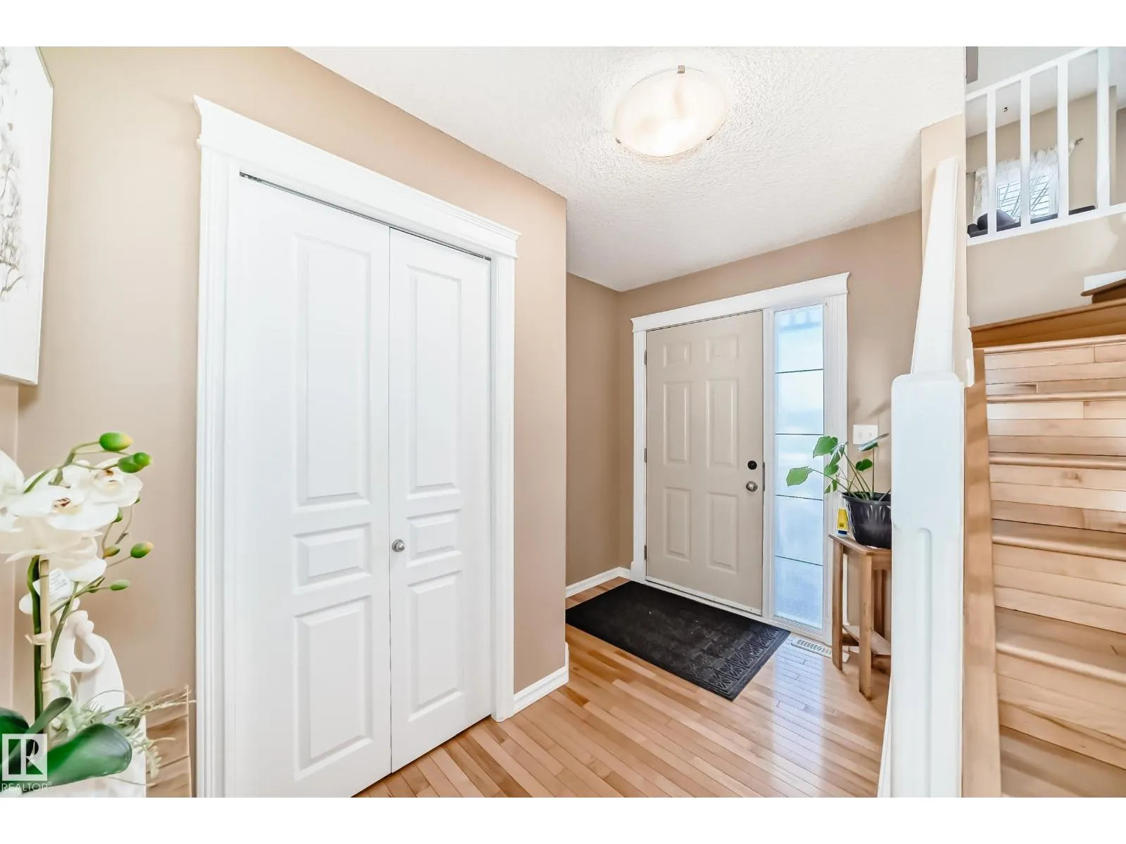 Immaculate family home in Lakeland Ridge featuring 4 bedrooms, 3.5 baths and a sunny SOUTH-facing backyard. Bright main floor offers upgraded hardwood, a spacious kitchen with white cabinets, corner pantry, Quartz counters and island overlooking the dining/living room with corner fireplace. The property comes with a laminate and hardwood throughout, a large bonus room, primary suite with walk-in closet and