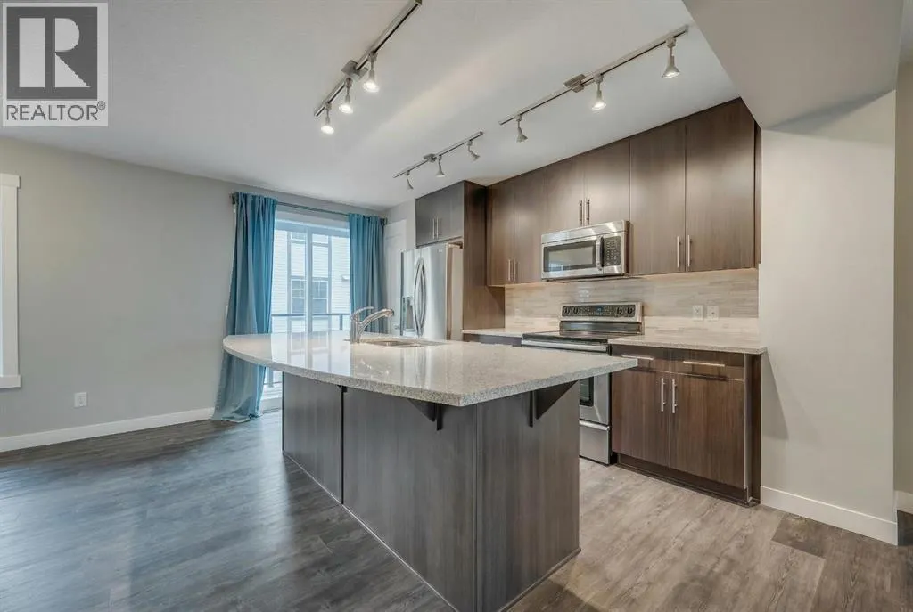 Looking for a first home that actually fits your lifestyle? This move-in-ready townhome delivers modern design, walkability, and low-maintenance living in one of Calgary’s most vibrant communities. The open-concept main level is built for everyday life—room to host friends, work from home, or just relax. The kitchen stands out with a large quartz island, stainless steel appliances, quality cabinetry, and