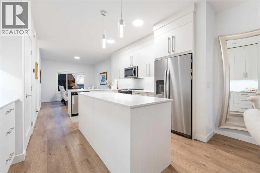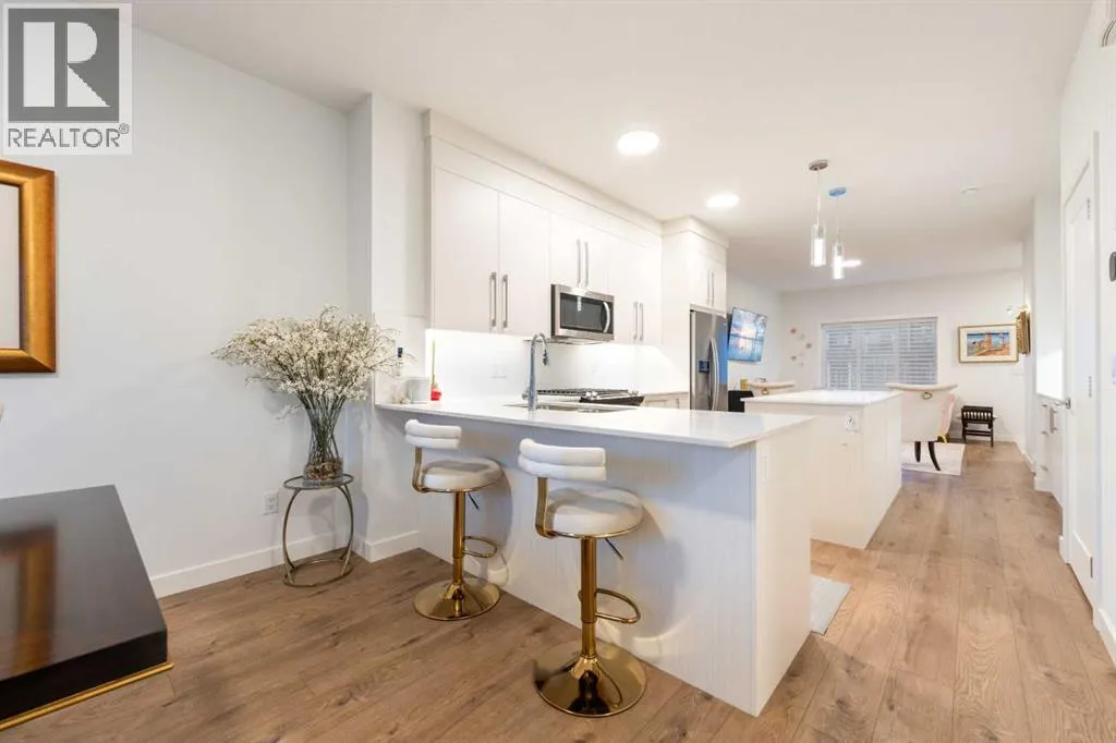 Welcome to this beautifully maintained, light-filled end unit townhouse in the vibrant community of Rangeview SE, offering 4 bedrooms, 3.5 bathrooms, a double insulated detached garage, and the added benefit of NO condo fees. Designed for both comfort and modern living, this impressive home showcases thoughtful upgrades, elegant finishes, and exceptional functionality throughout. Step inside to discover a warm and