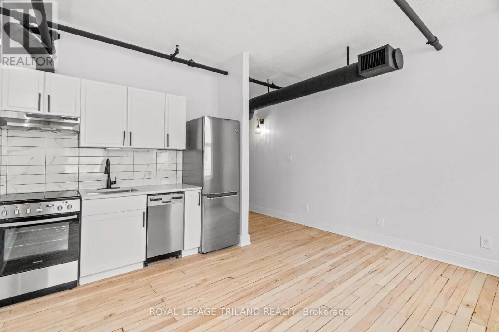 **Photos are of a similar unit** SEE INCENTIVES BELOW! Discover the elegance of this newly renovated one bedroom suite located in the vibrant heart of Downtown London. The unique industrial aesthetic, highlighted by exposed ductwork and soaring high ceilings, seamlessly blends with modern touches to create a sophisticated living space. Amenities include stainless steel appliances, in-suite dishwasher and on-site, coin