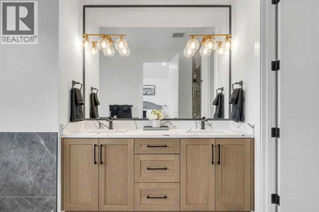Welcome to this stunning brand-new home that offers refined modern living in a highly sought-after location. Featuring 3 spacious bedrooms and 2 full bathrooms upstairs with convenient upper-floor laundry, the luxurious primary suite impresses with vaulted ceilings and a spa-inspired ensuite complete with a soaker tub, separate glass shower, and heated floors for year-round comfort. The main level showcases soaring