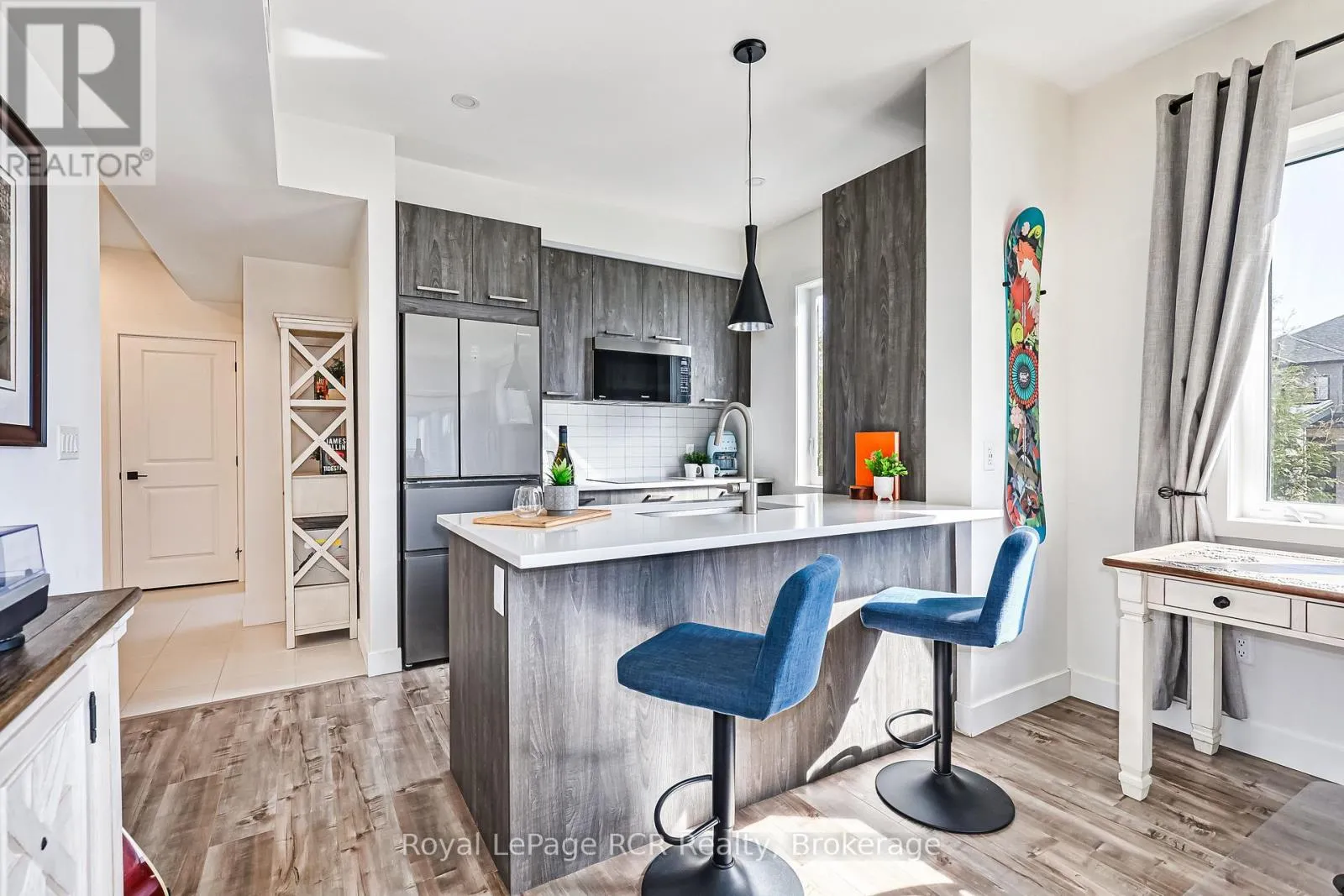 Welcome to Mountain House at Blue Mountain! This beautifully furnished 2-bedroom, 2-bathroom ground-floor end unit in the Affinity building is offered fully turn-key, making it easy to settle in and start enjoying the lifestyle right away. The open-concept living, dining, and kitchen space is filled with natural light and opens onto a covered patio through large sliding doors-perfect for relaxing