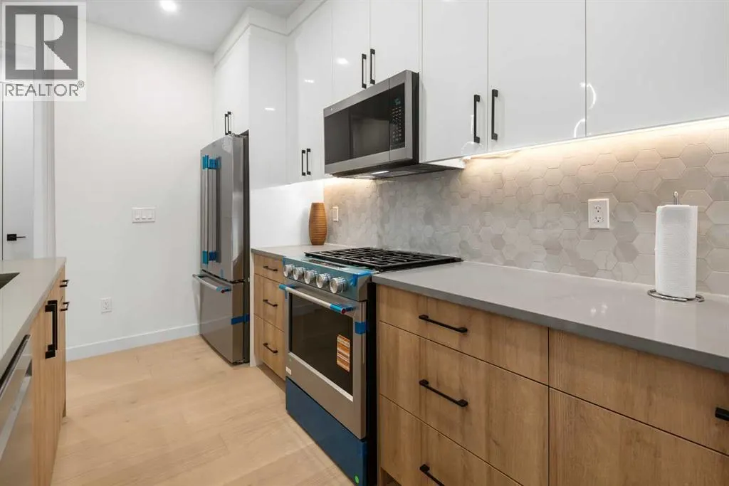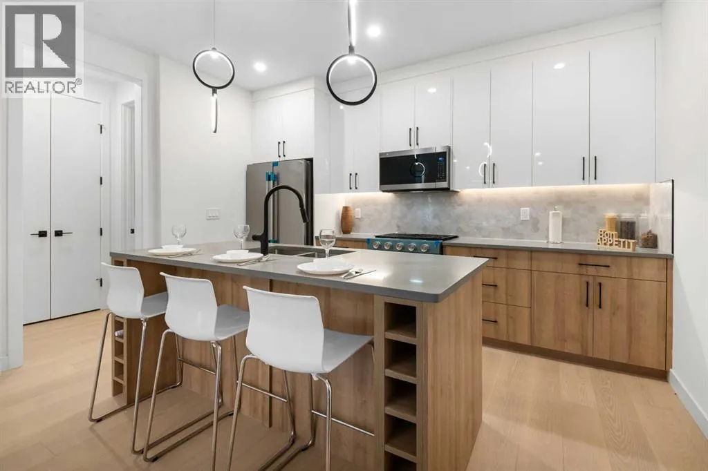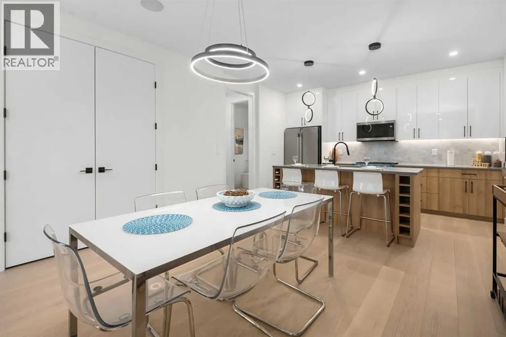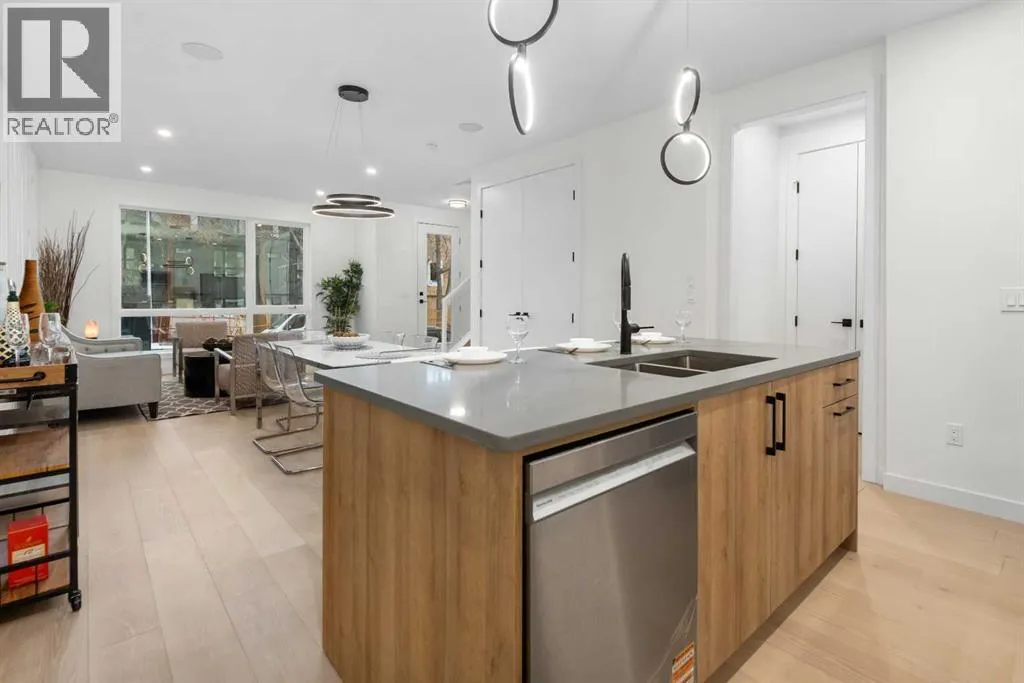 Located on a tree lined street, steps to river park, and the heart of Marda Loop. Featuring over 1800 square feet of space on three levels, and an addtional 570 square feet separate legal basement suite with separate entrance. (Units can be connected to basement directly if desired) High quality modern finishes throuhout this spacious townhouse.