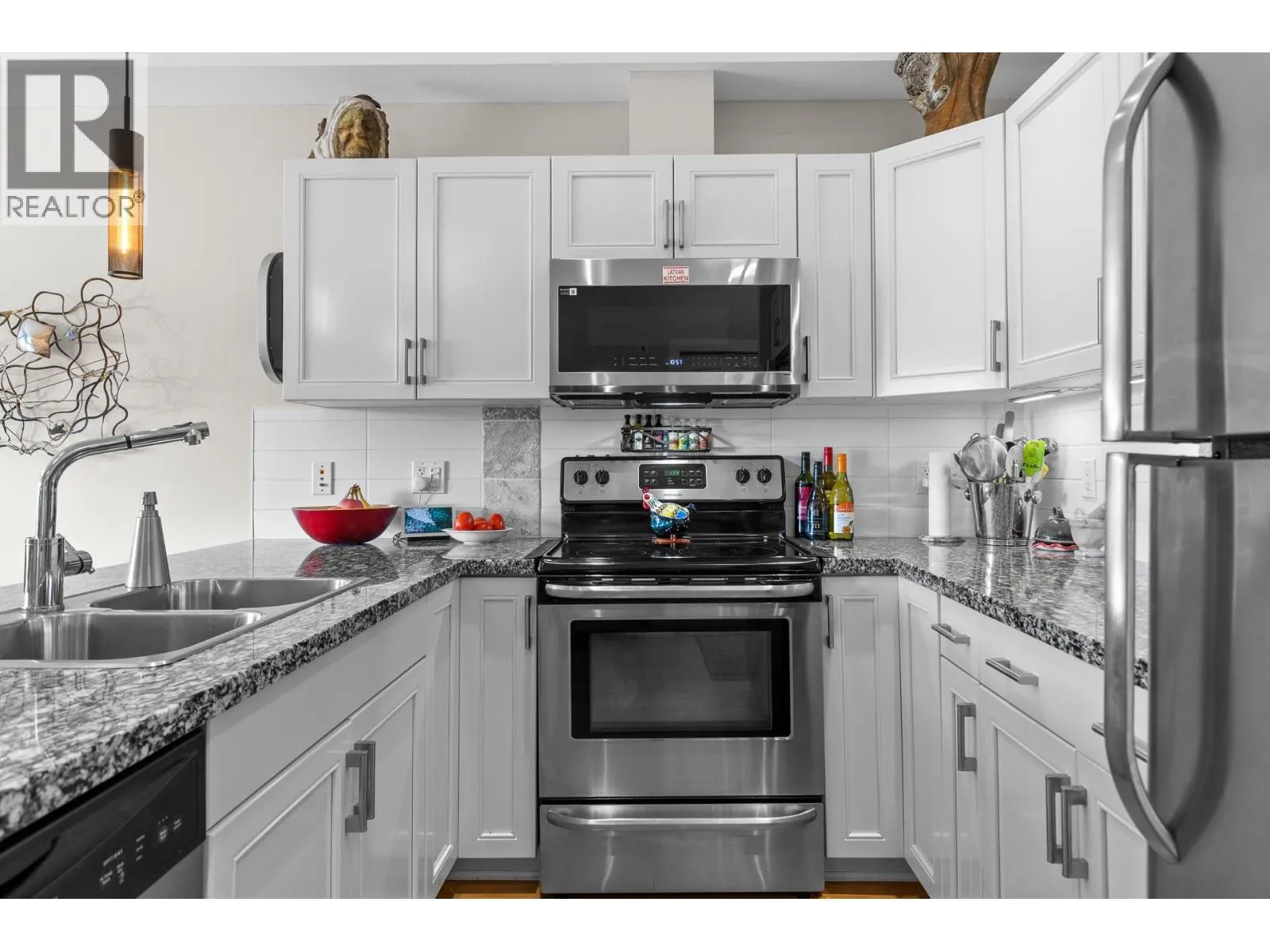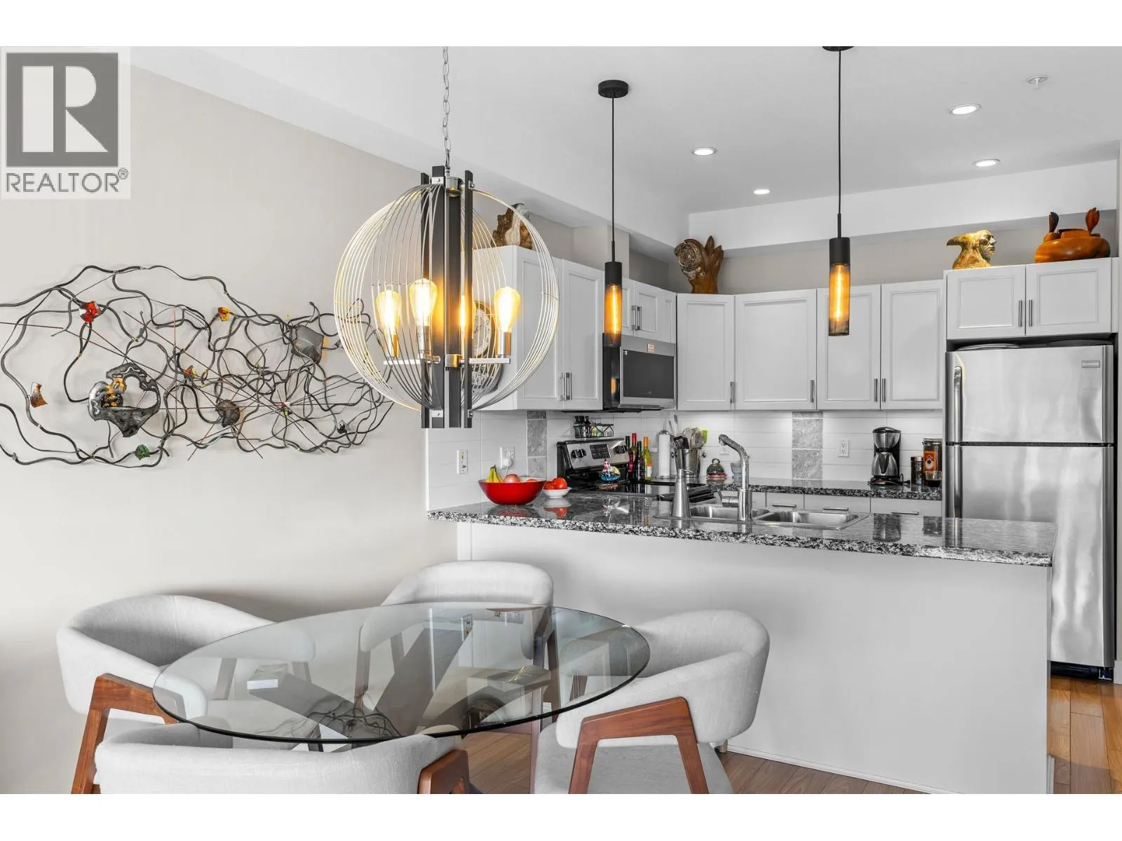 Live the Okanagan lifestyle at Copper Sky! This bright 4th-floor 2 bed, 2 bath condo offers 929 sqft of open-concept living with granite counters, stainless appliances, modern cabinetry and lake + mountain views from your private balcony. Enjoy resort-style amenities including heated pool, hot tub, sauna, gym, library, multi-sport court and event lounge. Pet-friendly, no age restrictions, short-term rentals allowed