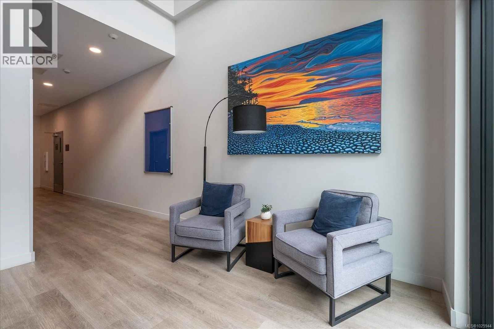 This second floor condo features luxury vinyl plank flooring, quartz countertops, soft-close cabinetry, LED lighting, triple pane windows, heat pump for heating and cooling, and energy recovery ventilation for year round comfort. The open concept floor plan features a spacious primary bedroom with ensuite, a second bedroom featuring a dual entry bathroom, a private balcony with ocean and mountain views.