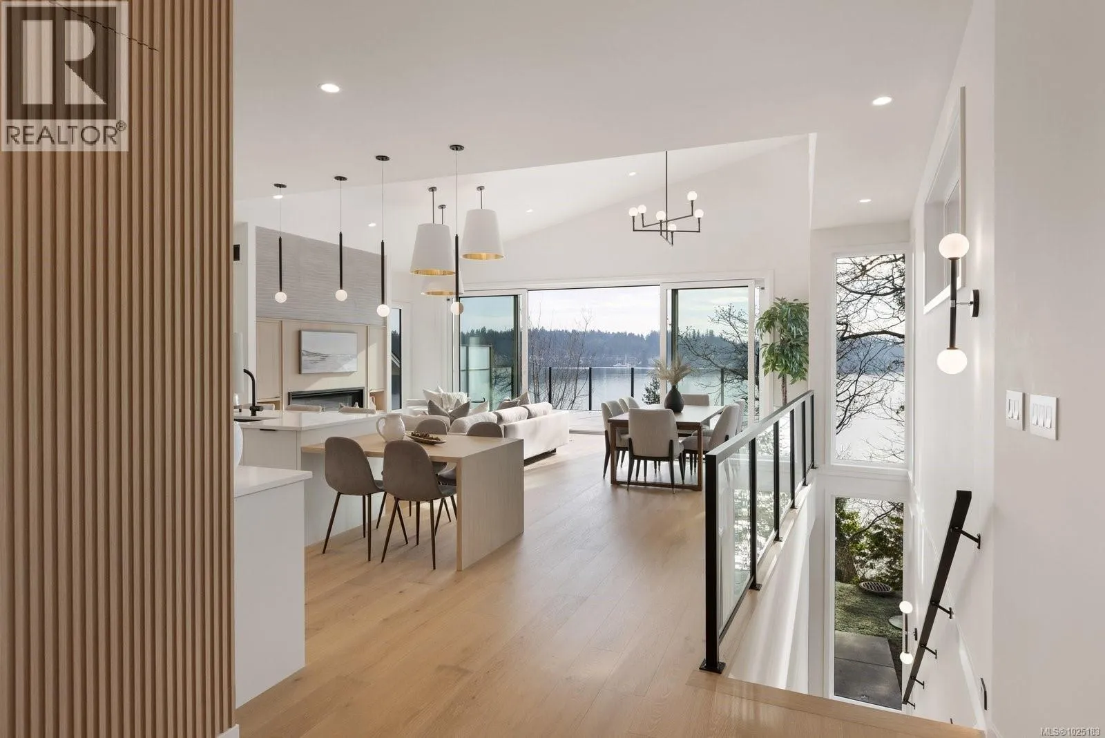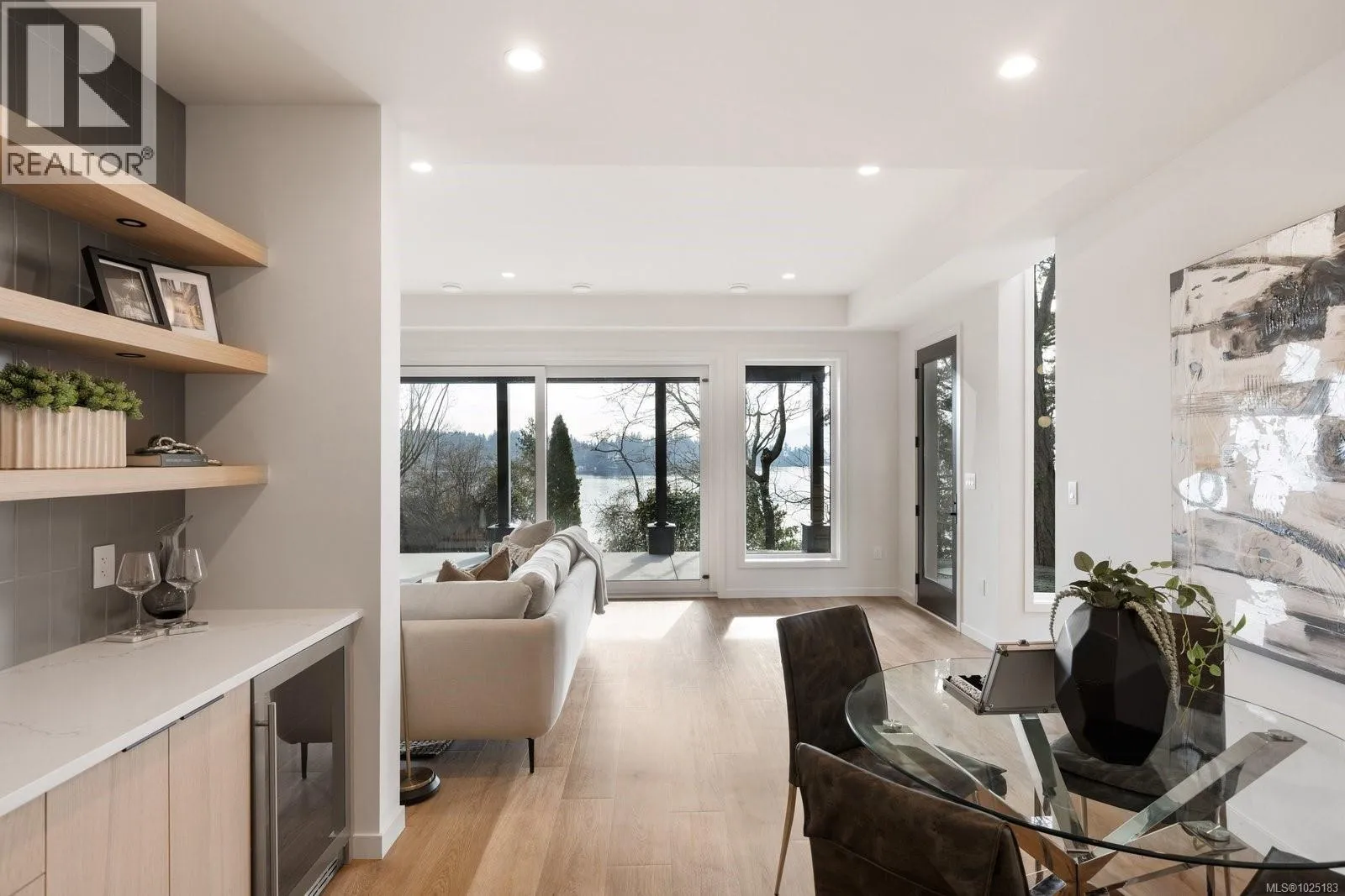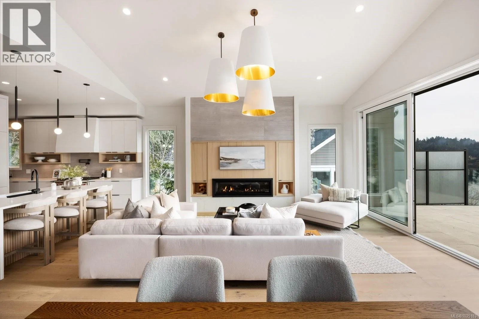 Set on 0.37 acres of southwest-facing waterfront in the coveted Deep Cove neighbourhood of North Saanich, this brand-new contemporary home offers protected ocean views, warm evening sun, and breathtaking sunsets. Built by Villamar Homes, the 3,151 sq.ft. residence blends refined modern design with natural coastal textures. The open-concept main level features soaring 10’–16’ ceilings, oversized sliding doors, and seamless