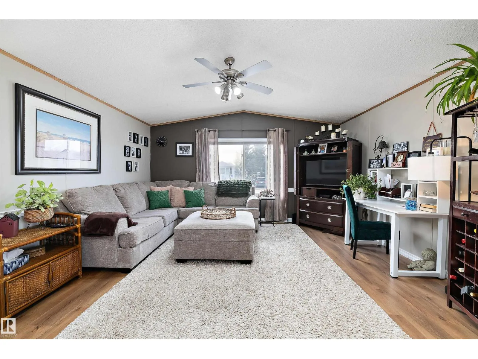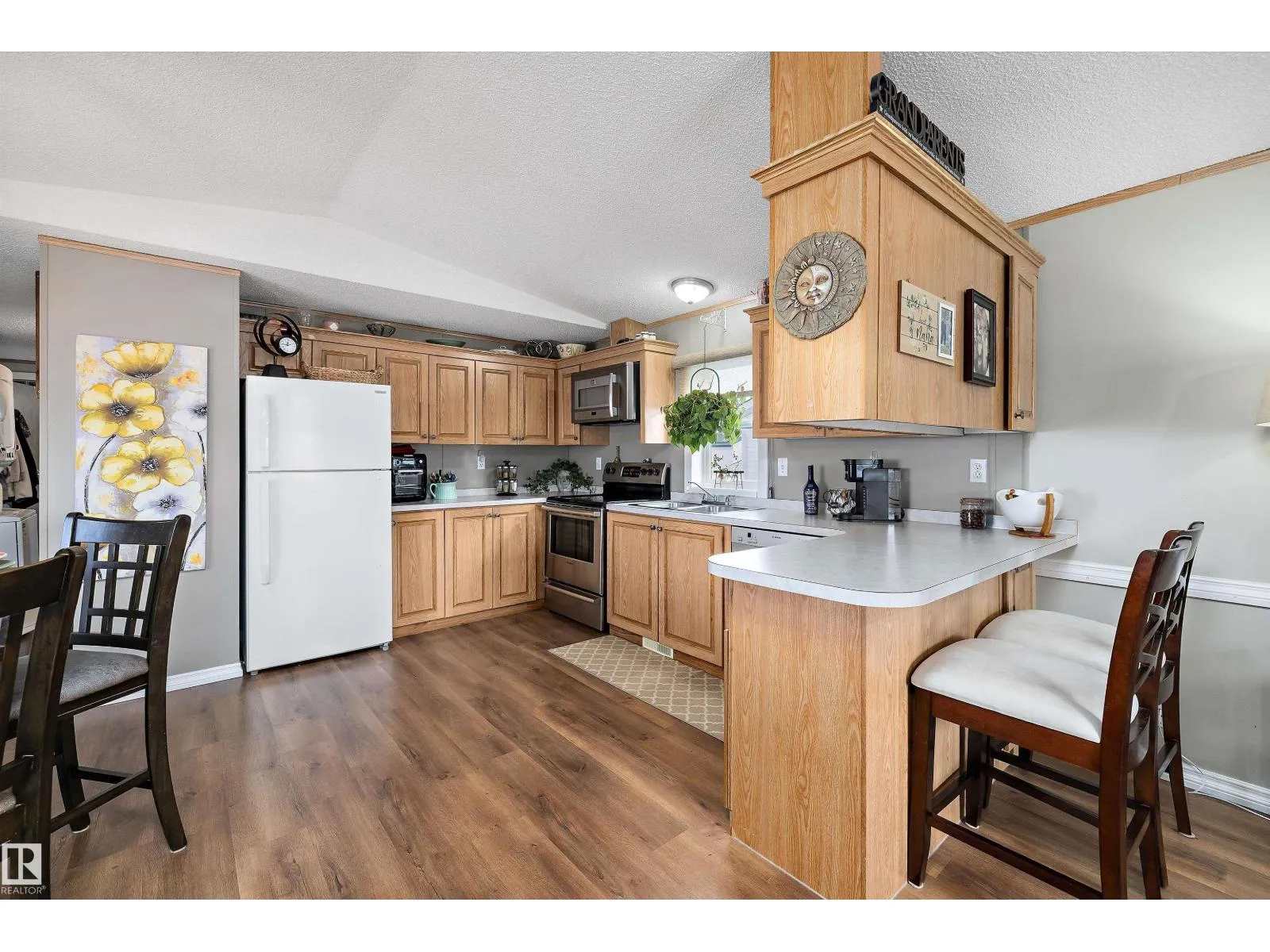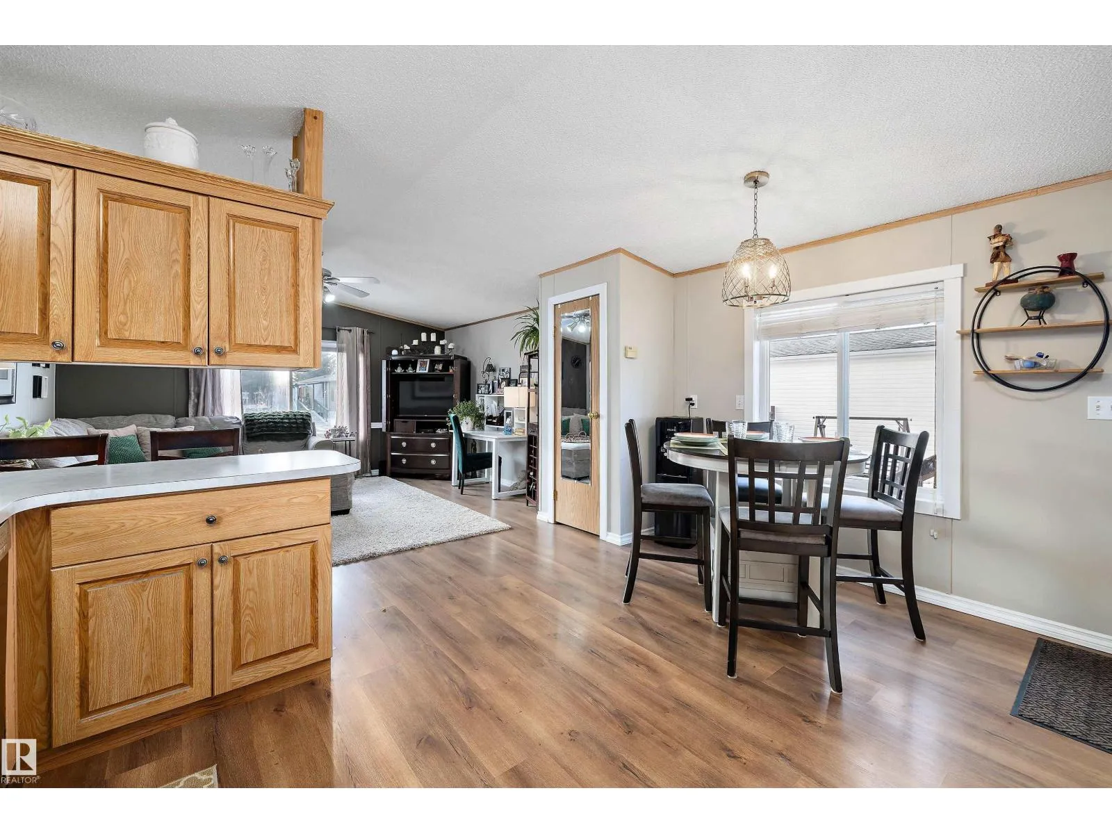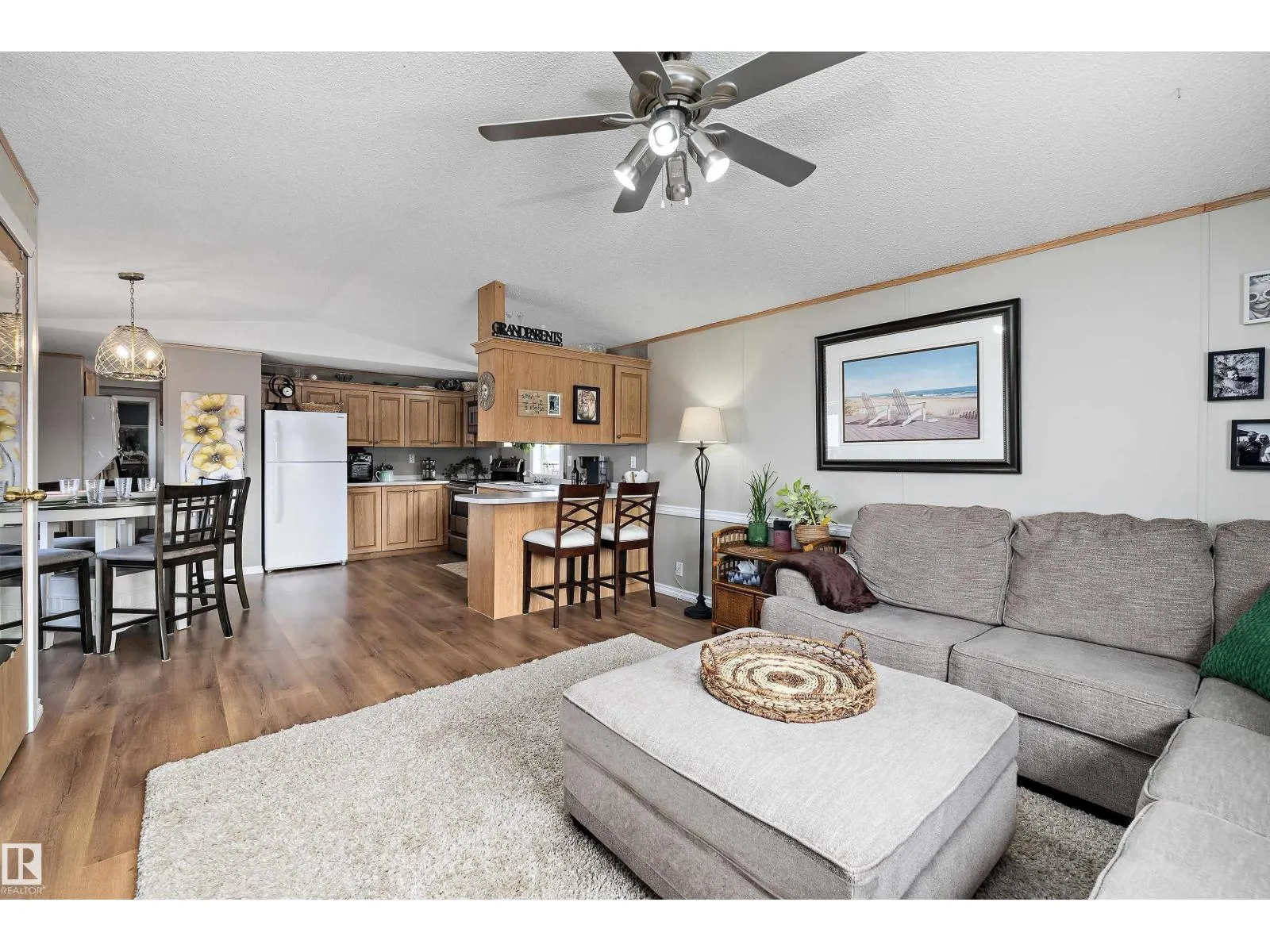 Step inside this quaint 2 bedroom home in the quiet community of Meridian Meadows. This home has been lovingly maintained and features an open concept kitchen and living space with vaulted ceilings that is drenched in natural sunlight with a large south facing livingroom window. Living space has newer laminate flooring and kitchen has some updated appliances. Toward the rear