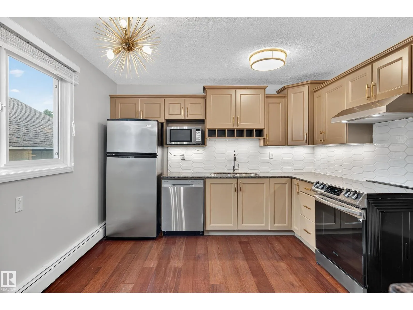 PET FRIENDLY! Bright, and spacious condo in Old Strathcona! This south-facing second-floor corner unit is flooded with natural light and showcases views of the majestic boulevard elm trees. Inside, quality finishes are on full display- granite counters, rich cabinetry, and stainless steel appliances enhance the huge open-concept kitchen. The professionally renovated bathroom offers marble counters and a sleek modern design.
