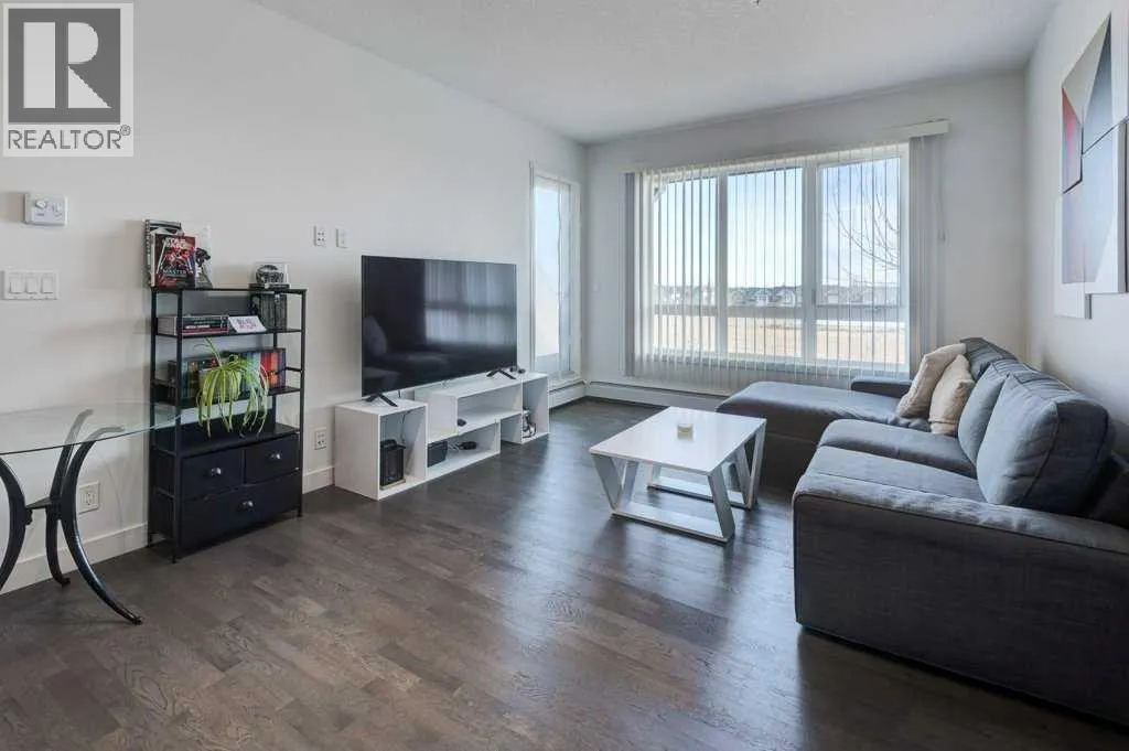 Welcome to this beautifully maintained, original-owner 2-bedroom, 2-bathroom main floor condo in the heart of Silverado! Perfectly positioned and backing onto a serene greenspace, this home offers the ideal blend of privacy, comfort, and convenience in one of Calgary’s most family-friendly communities.Step inside to discover 9-foot ceilings and oversized windows that fill the space with natural light. Engineered hardwood flooring
