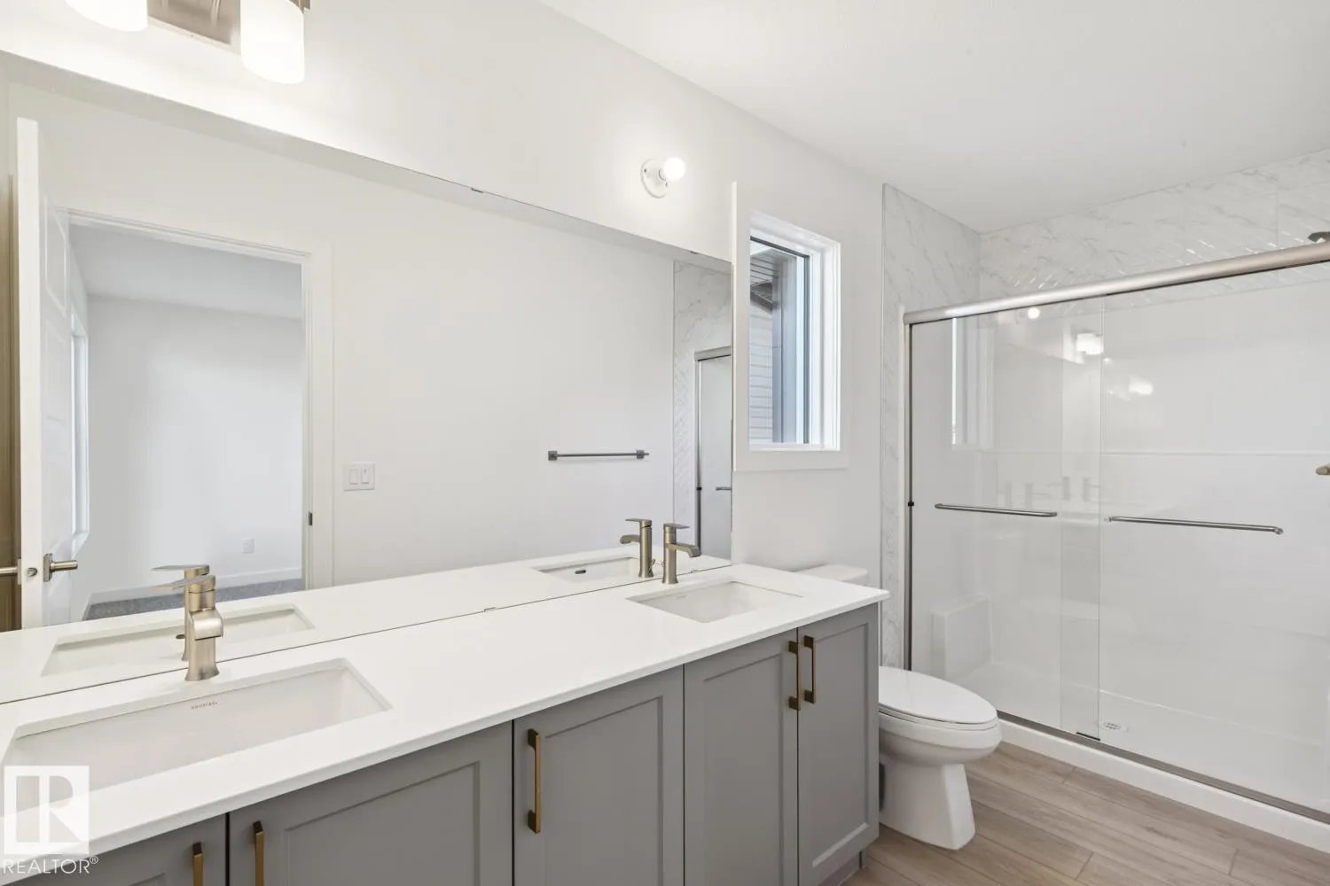 Built by Sterling Homes, this bright front-attached home in College Woods at Lakeview offers modern comfort in a tree-lined community with walking paths and natural amenities. Triple pane windows and 9’ ceilings create a light, airy main floor with a spacious foyer and seamless living area. The kitchen features quartz counters, a large island, ceiling-height cabinets with crown moulding, chimney