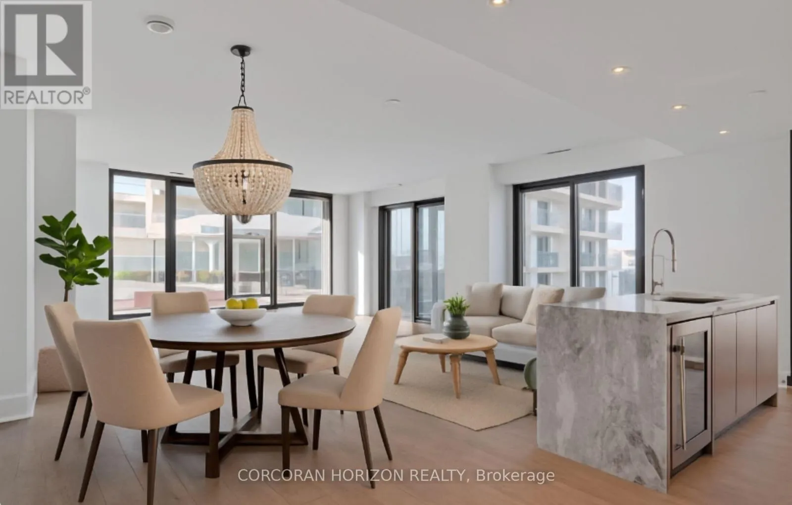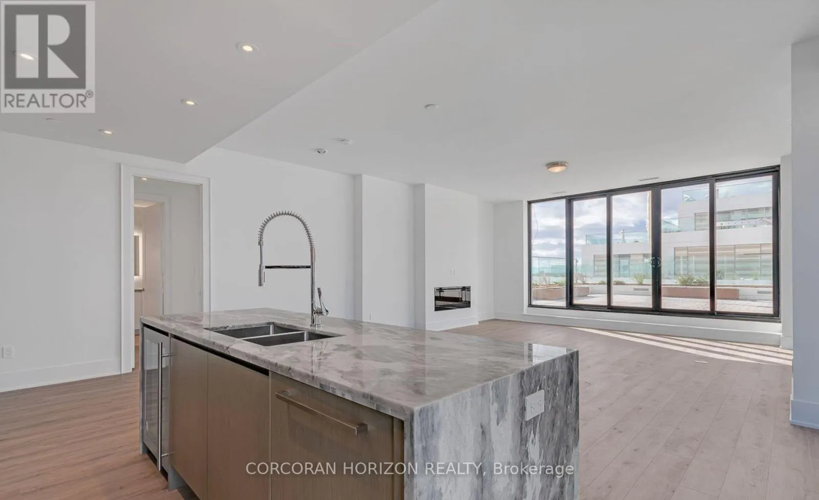 Set along the waterfront, this expansive 1,865 sqft condo with an impressive 800 sqft terrace offers unobstructed scenic views of Lake Ontario! You wont need a cottage when you can enjoy all of the seasons from the comfort of home. Featuring wide plank white oak flooring, stunning stone waterfall edge island, built in appliances, and upgraded cabinetry, this condo is