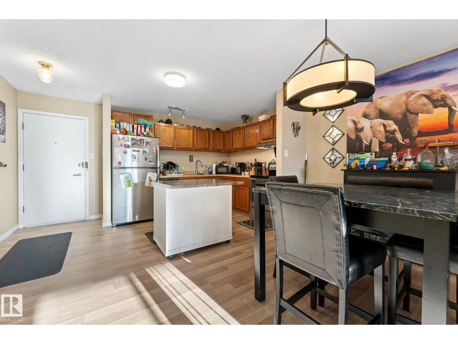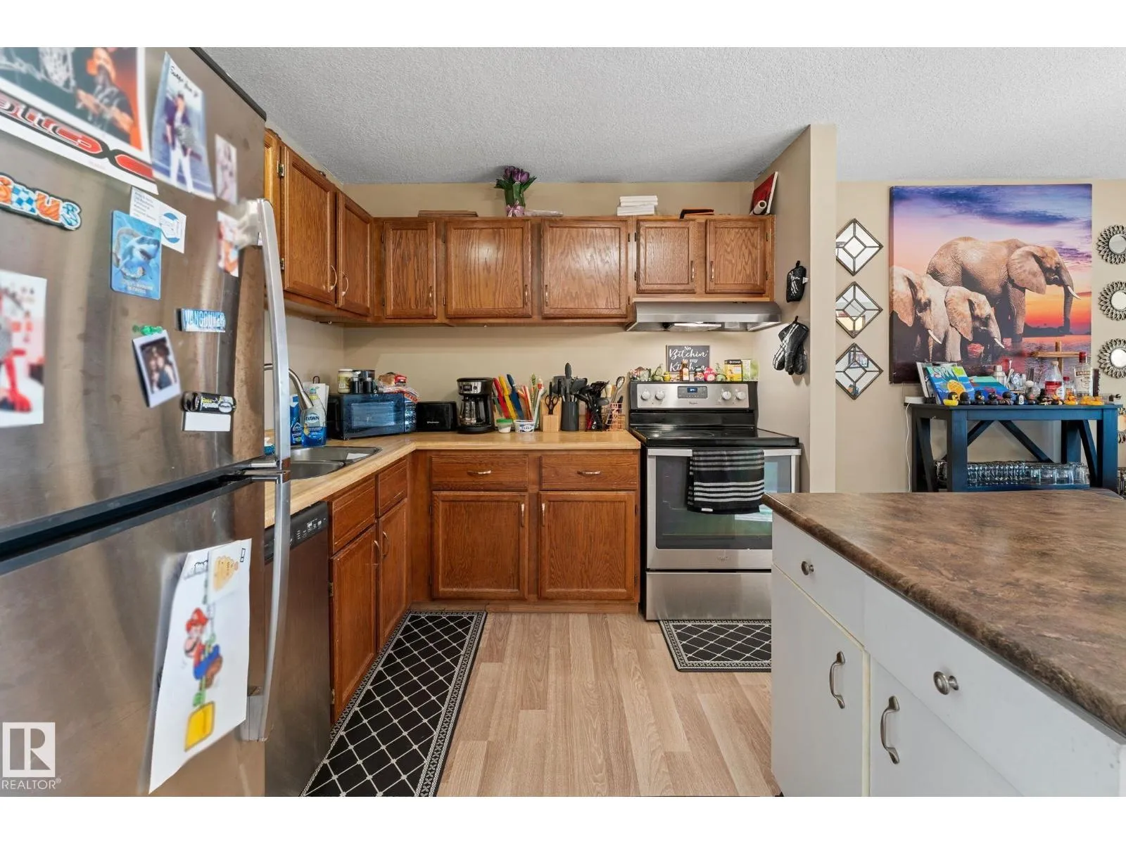 Great Investment Opportunity awaits with this spacious Open Concept Layout with Oak Kitchen complete with stainless steel appliances, eat-in kitchen with moveable island, New laminate flooring blends seamlessly into sunken living room bathed in sunlight and features a wood burning fireplace. There’s direct access to west facing deck with storage room. The primary bedroom is generous with
