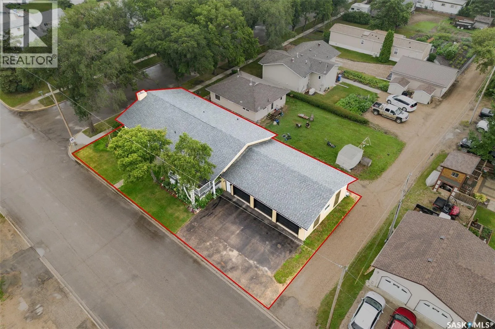 Welcome to 100 Bartlett Avenue in the lovely town of Kinistino! This move-in ready bi-level family home shows pride of ownership throughout, and has space to spare! Park in the triple attached garage or triple asphalt driveway- pause to admire the established and low-maintenance lawn space- and make your way inside! The upper level features a spacious sitting room with