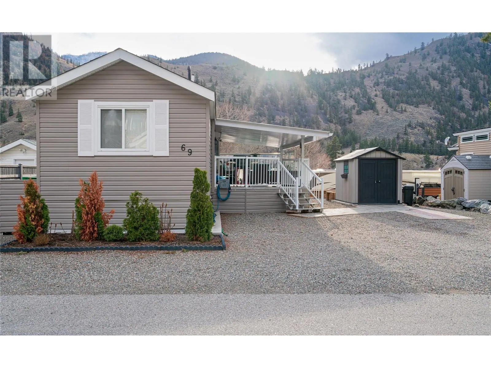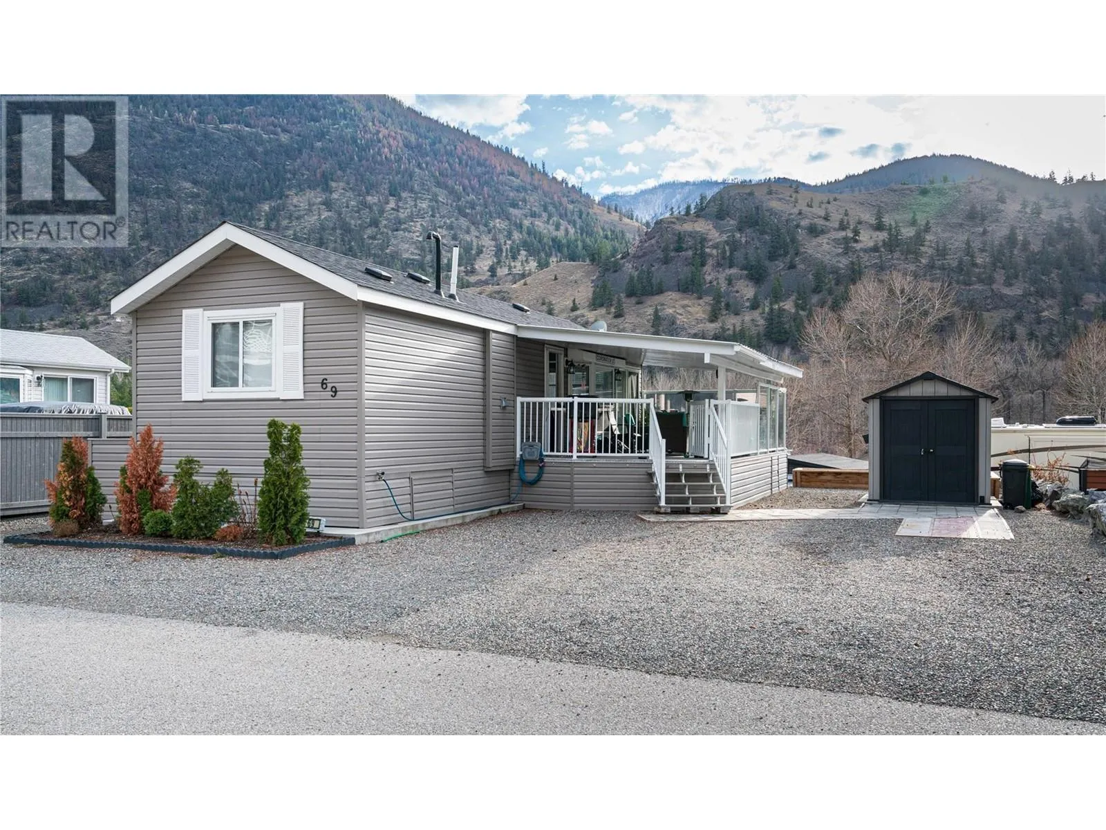 Visit REALTOR website for additional information. Whether you’re after year-round comfort or a seasonal getaway, this well-kept 1 bed, 1 bath park model offers nearly 500 sq ft of open-concept living with vaulted ceilings and stainless-steel appliances—including a full oven range. It also features a stackable washer/dryer, low-maintenance landscaping, and an 8×10 storage shed. Relax on the covered deck