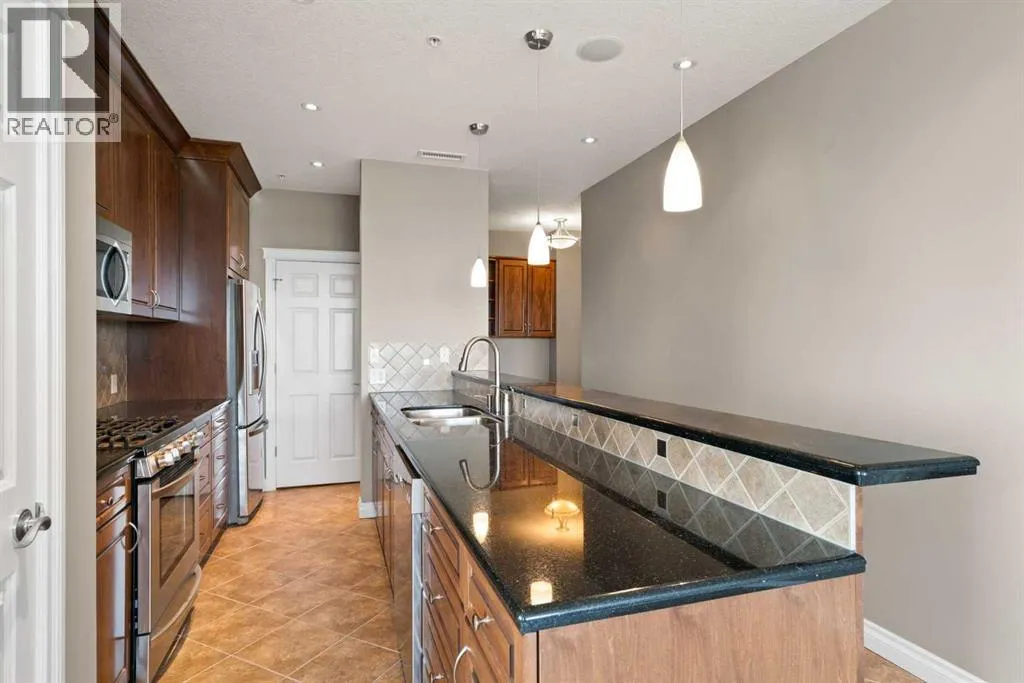 PANORAMIC unobstructed views of the city while overlooking treetops of the Shaganappi Golf Course from this stunning condo. +1462 SQ FT of versatile space. Only 6 units comprise the 8th floor. Unit features 2 large Bedrooms, 2 full Bathrooms, built in desk, chef inspired kitchen, granite counters, full ceiling height cabinetry, a breakfast bar, high-end stainless steel appliances, gas stove