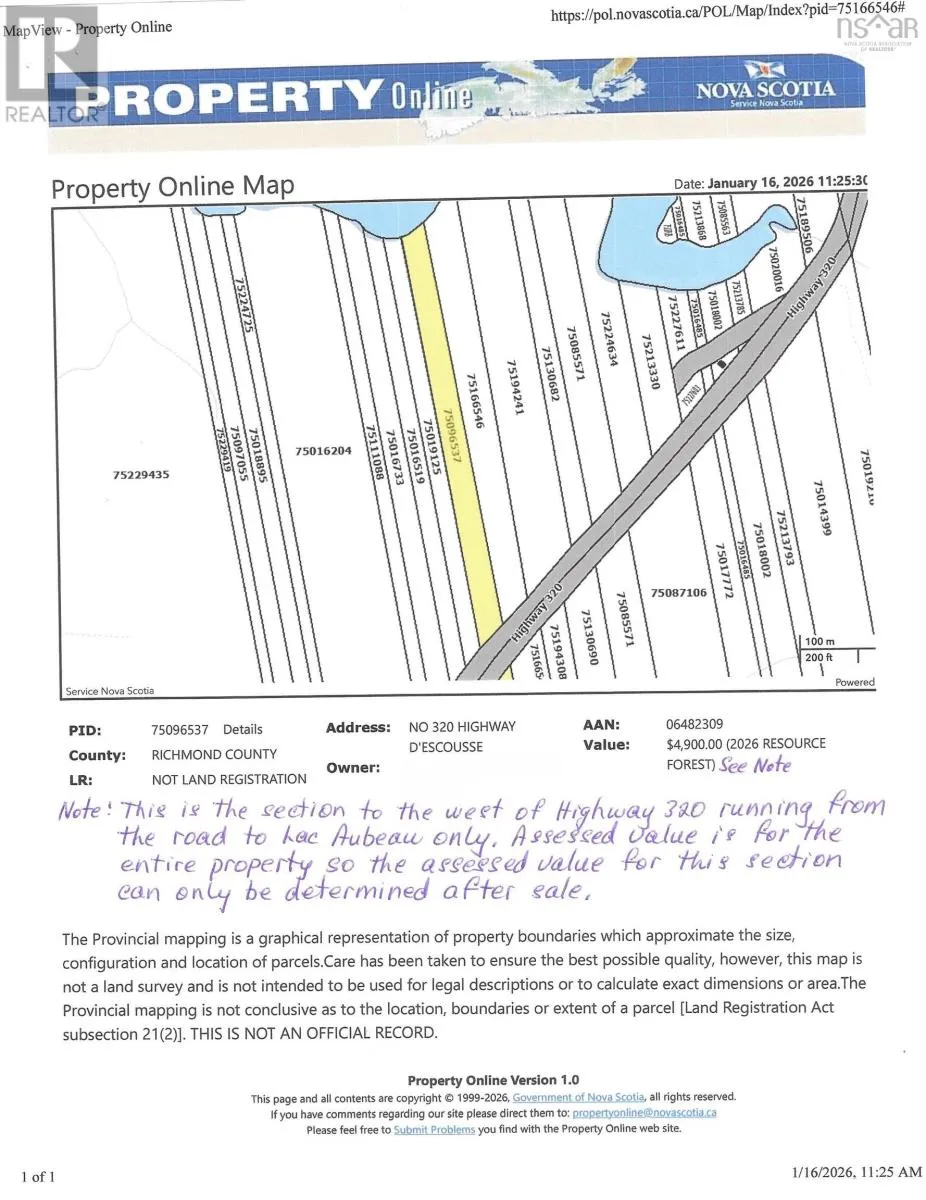 cafés, fish markets and spectacular seaside views from just about everywhere. You will also discover beaches, lighthouses and other amazing sights wherever you go. This hidden gem is where Acadian culture lives on through song, music, dance and crafts. You can own a small piece of this island paradise at a very affordable price. This property takes in approximately 2.7 acres of vacant land beginning on the south shore of Lac Aubeau (a.k.a. Langlois Lake) and running South to Highway 320. With approximately 76 feet of lakefront, you can easily access the brackish waters of Lac Aubeau to experience an abundance of undisturbed natural beauty with easy access to the Poulamon Bay and Lennox Passage. The property is also a short walk to the DEscousse Harbour and the Lennox Passage Yacht Club, ideally located for boaters sailing in and out of the Bras DOr Lakes. This is an ideal property for a cottage or camp. (id:62650)