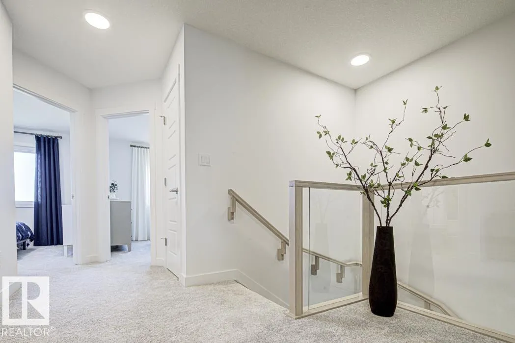 Built by Sterling Homes, these modern residences in Aster and Edgemont Place offer open-concept main floors featuring 9’ ceilings and triple-pane windows. Each kitchen is designed for functionality with quartz countertops, central islands with seating, upgraded cabinetry, chimney hood fans, and built-in microwaves. While the Aster duplex includes a corner pantry, the Edgemont Place home features a walk-through pantry connecting