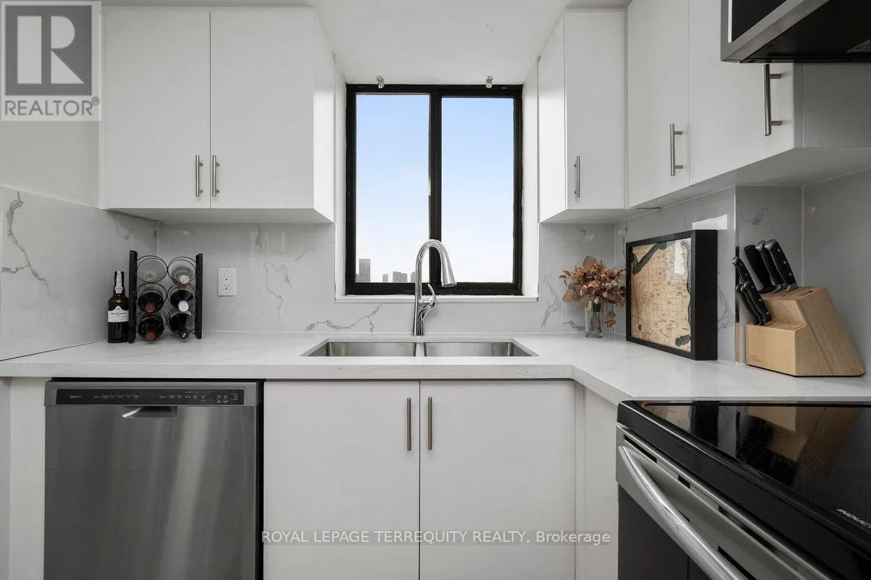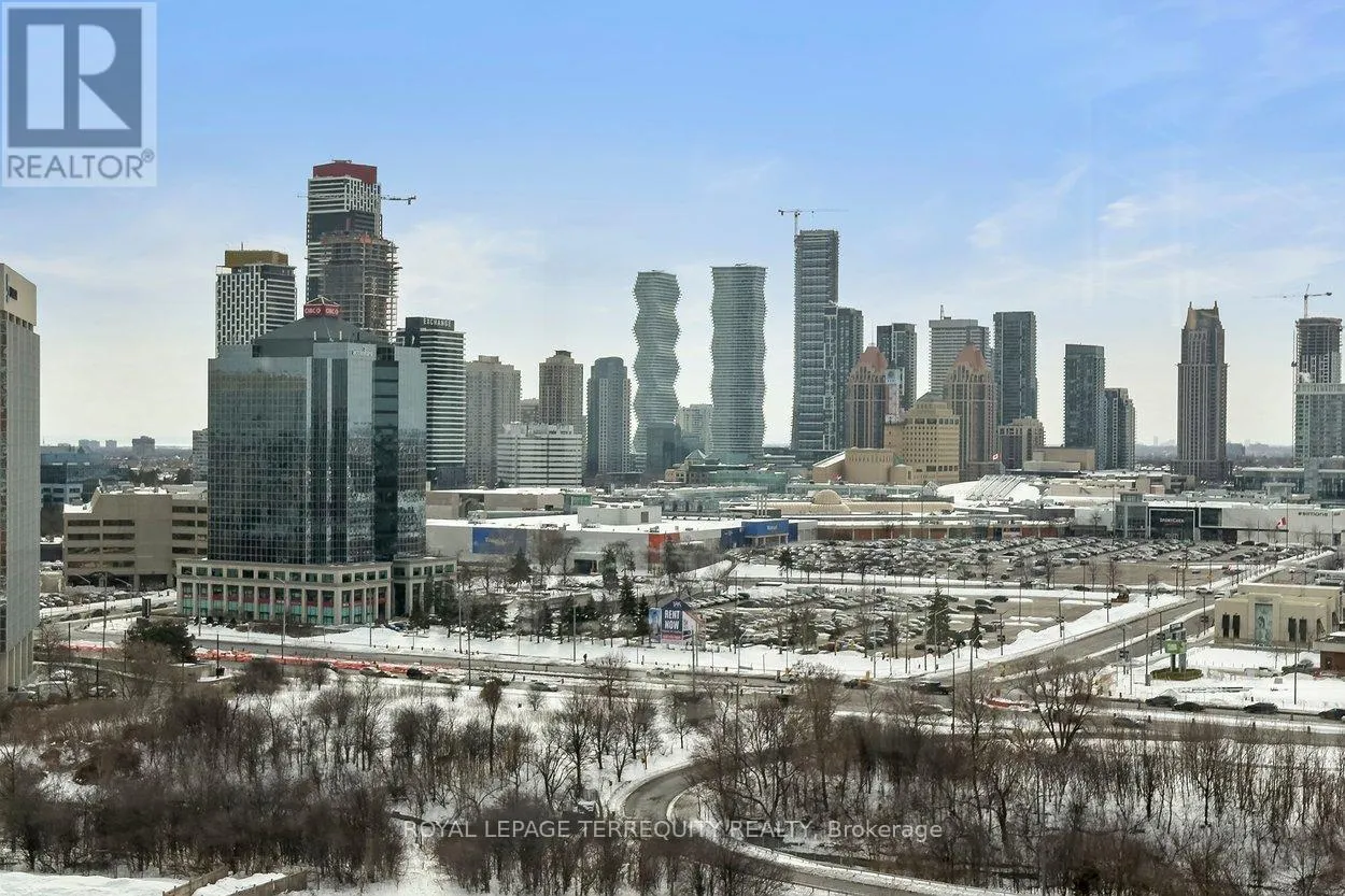 Welcome to 4235 Sherwoodtowne Blvd, Unit 1607. A sun-filled corner residence offering spectacular, unobstructed views in three directions and a thoughtfully designed, spacious layout spanning 1,322 square feet. Updated with meticulous attention to detail, this beautifully refreshed suite features a new kitchen (2021) with centre island, quartz countertops, stylish backsplash, and stainless steel appliances. Newer washrooms (2021), custom closet organizers,