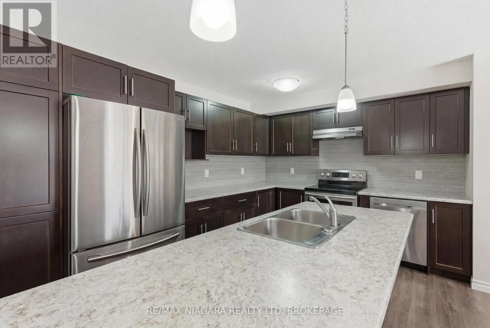 Expansive 3-bedroom, 3-bathroom FREEHOLD end-unit townhome set within a prestigious Fonthill neighbourhood. Offering approximately 1,740 sq ft across two levels, this bright corner property includes a 1.5-car garage and outstanding value – with no condo fees. Welcoming front foyer with direct garage access. The main floor showcases an airy open-concept layout, featuring a kitchen with stainless steel appliances, stylish backsplash,