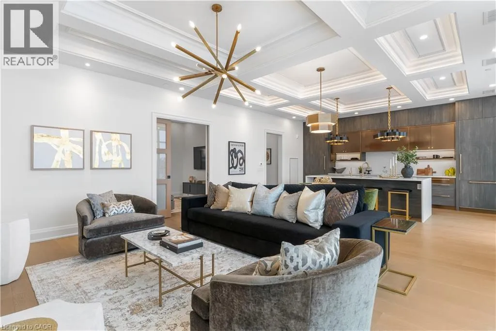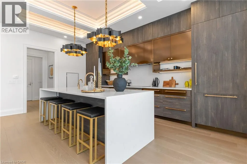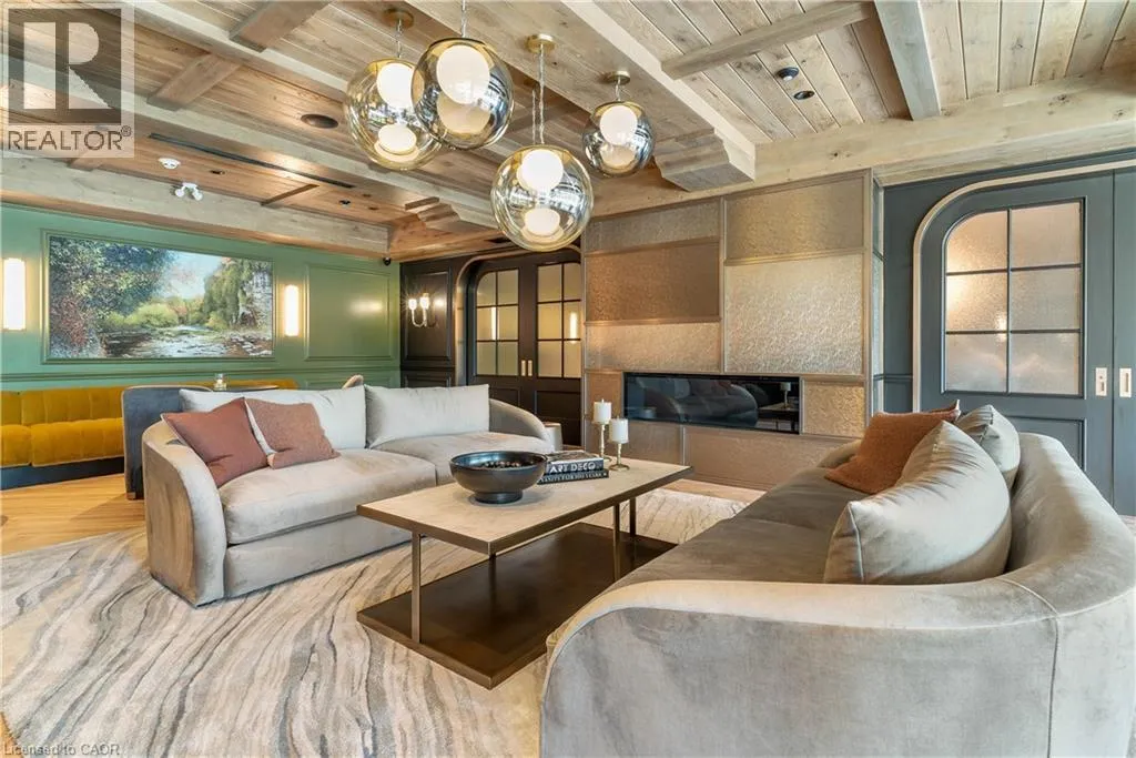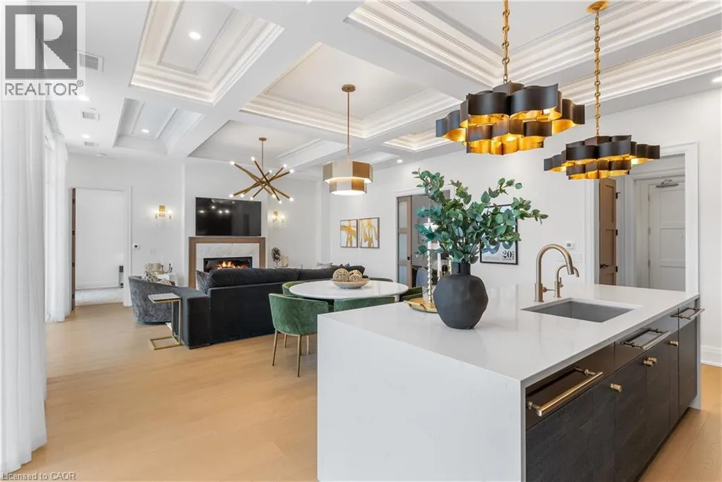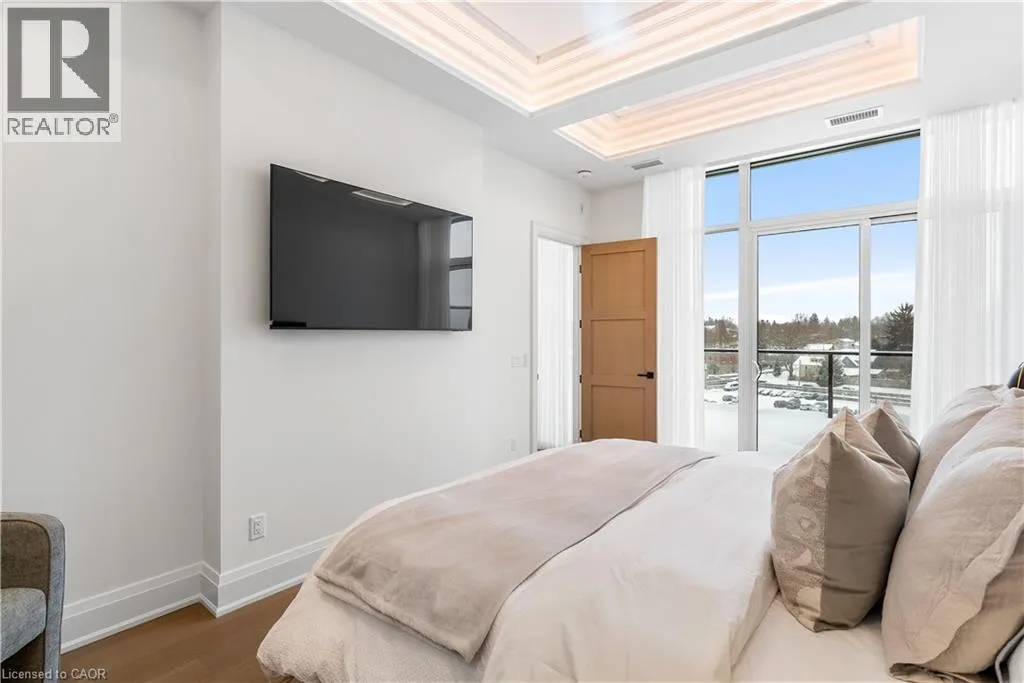 Experience elevated living at its finest in The Mill Penthouse! Set within the coveted Elora Mill Residences, this penthouse redefines luxury with soaring 10-foot ceilings, designer lighting, and curated finishes throughout. A gas fireplace adds warmth and sophistication to the open-concept living space, while the expansive private terrace, boasting over 650 sq. ft., offers a built-in gas line perfect for
